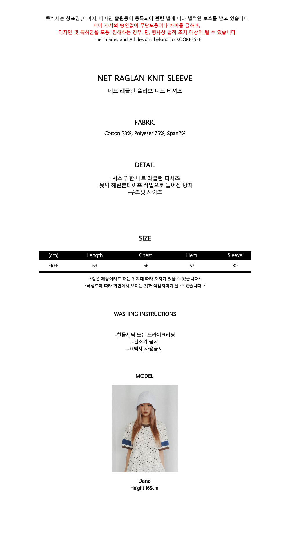 쿠키시 네트 래글런 슬리브 니트 티셔츠 스카이블루