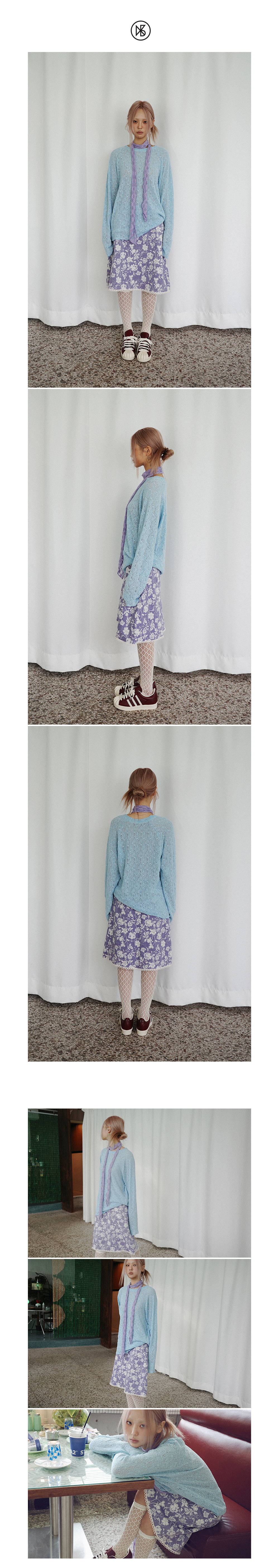 Kookeesee Net Raglan Knit Sleeve Skyblue