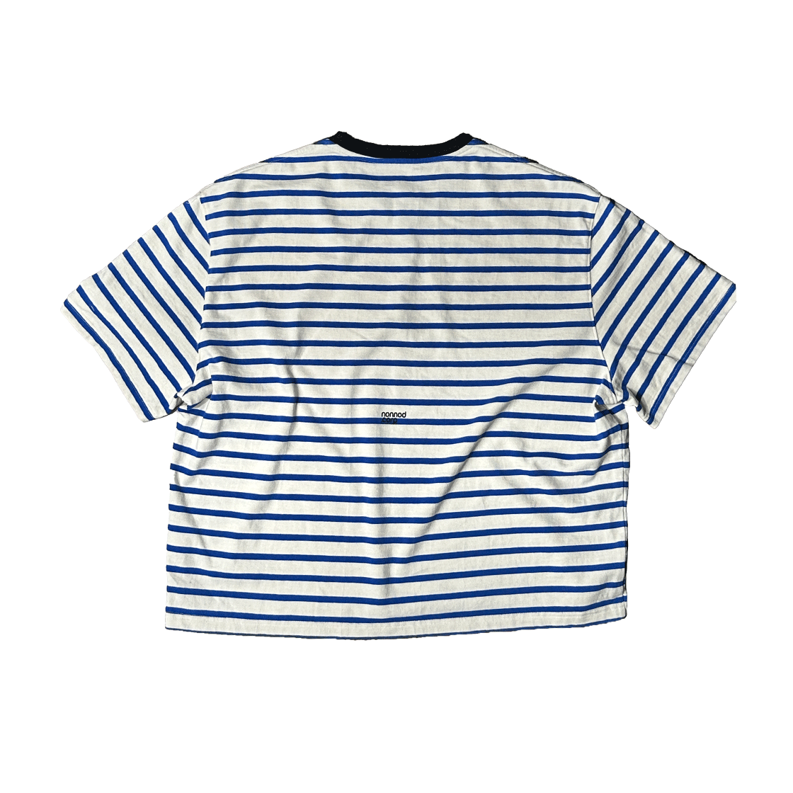 Nonnod Cropped V-neck T-shirt Blue stripe