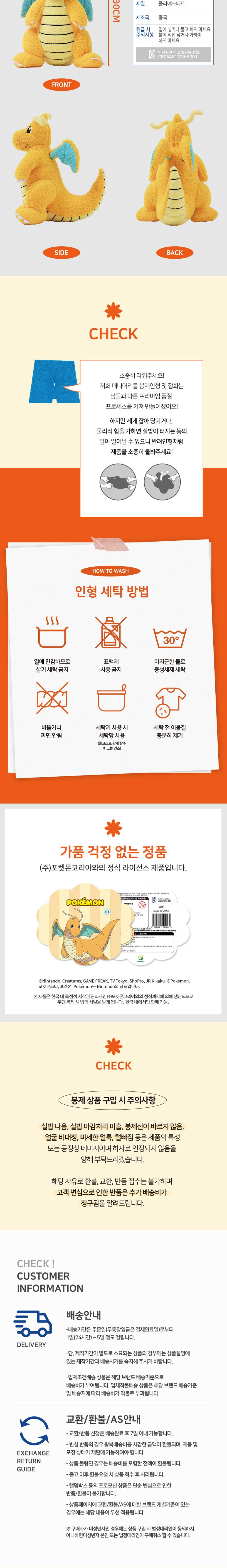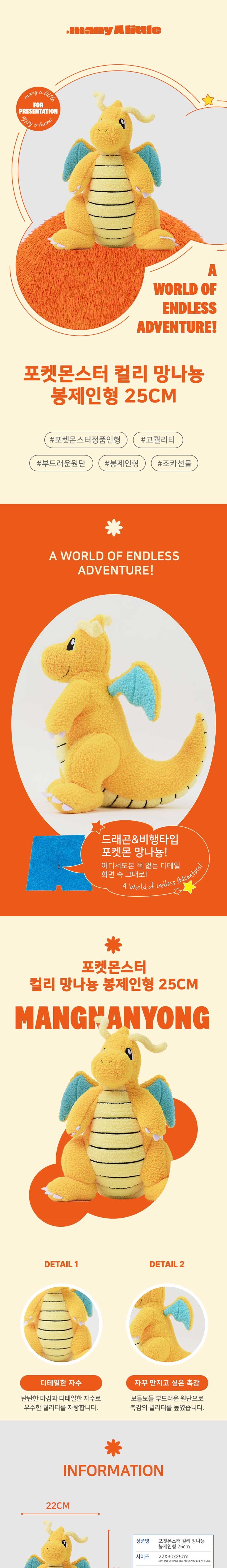 매니어리틀 포켓몬 컬리 봉제인형 망나뇽 25cm