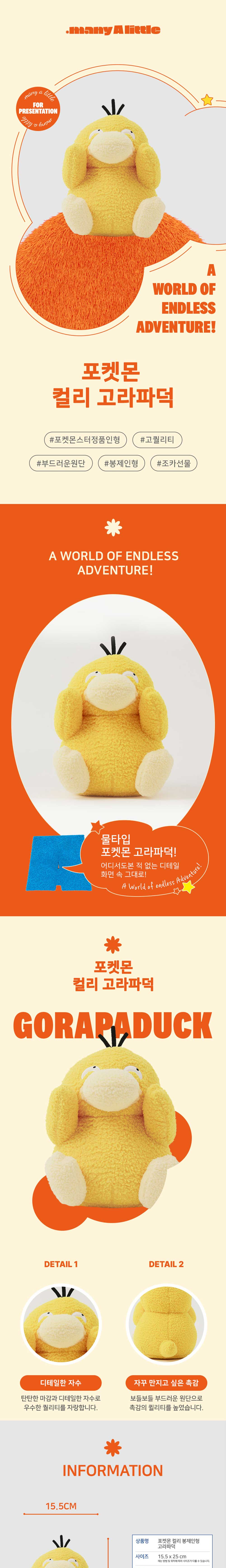 매니어리틀 포켓몬 컬리 봉제인형 고라파덕 25cm