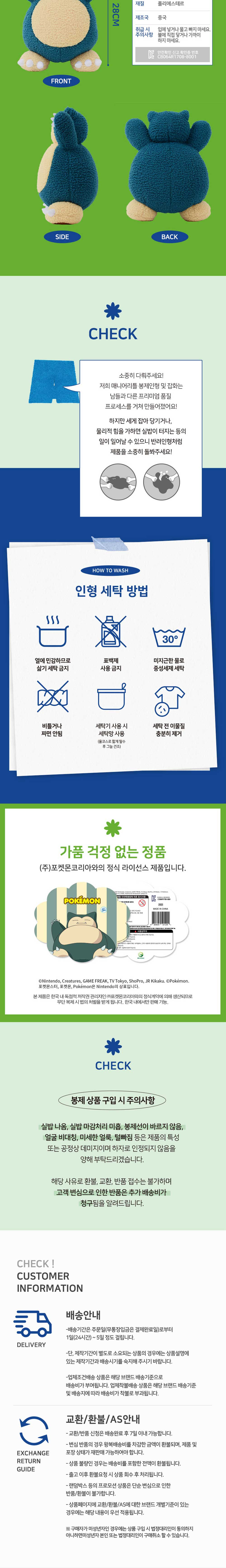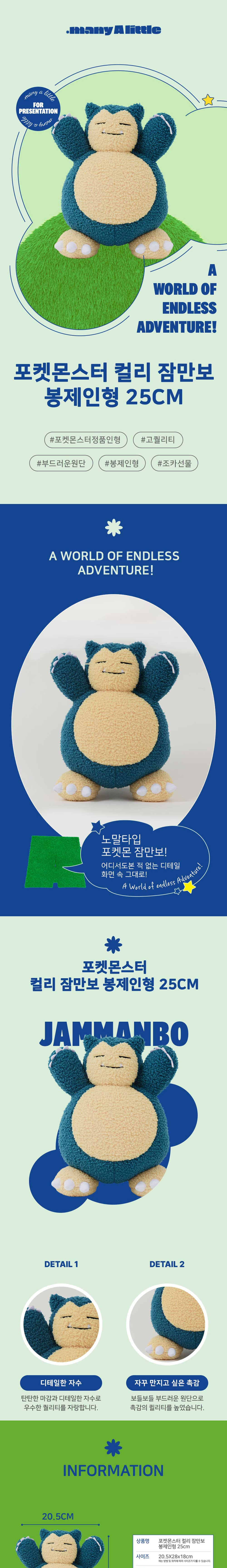 매니어리틀 포켓몬 컬리 봉제인형 잠만보 25cm