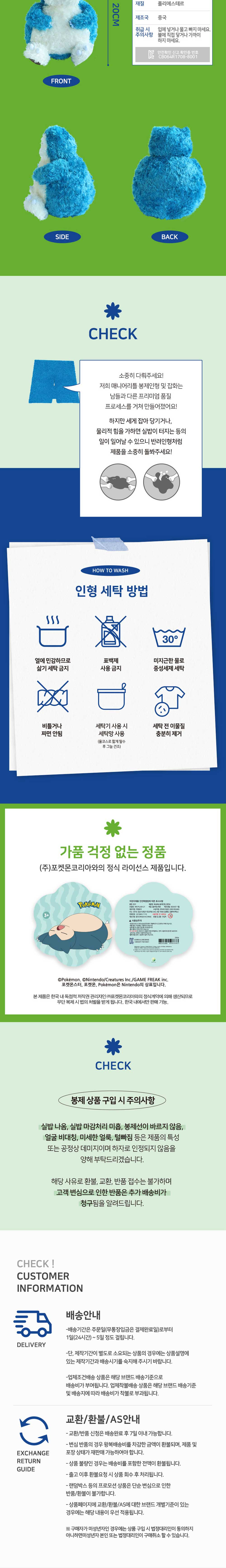 매니어리틀 포켓몬 복실복실 봉제인형 잠만보 25cm