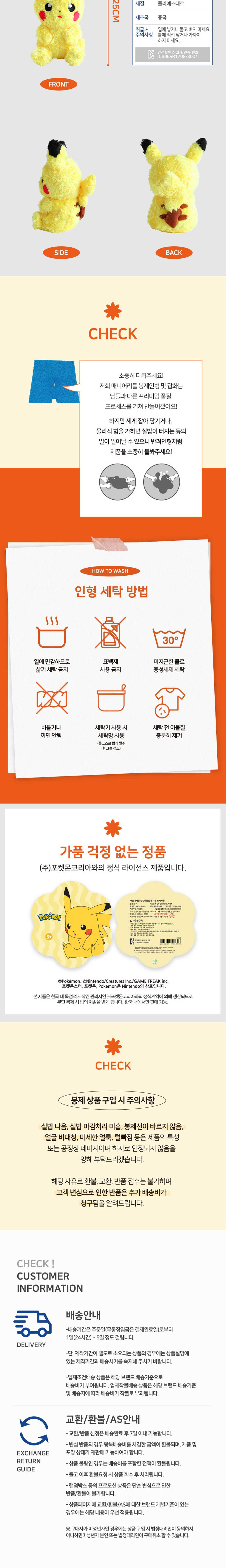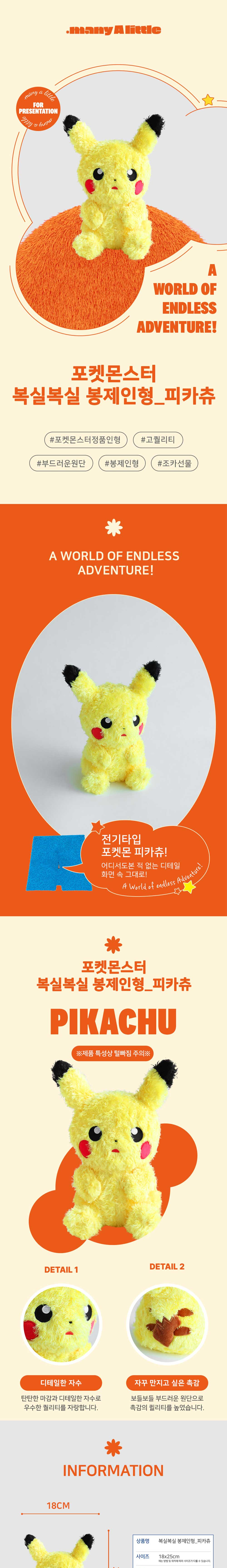 매니어리틀 포켓몬 복실복실 봉제인형 피카츄 25cm