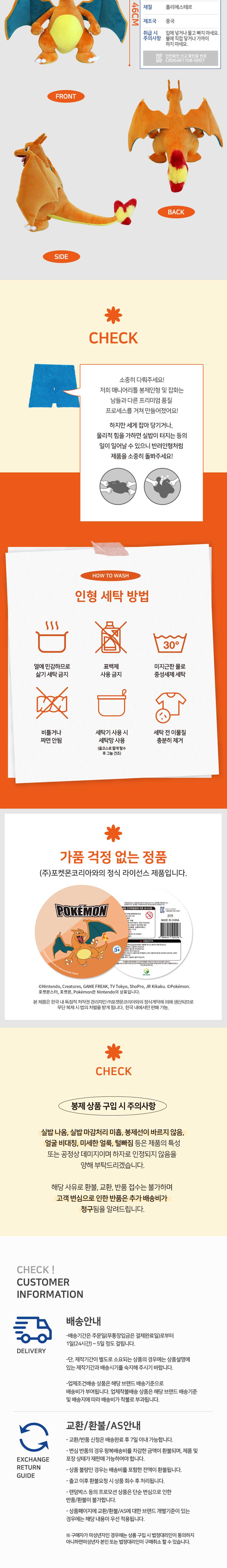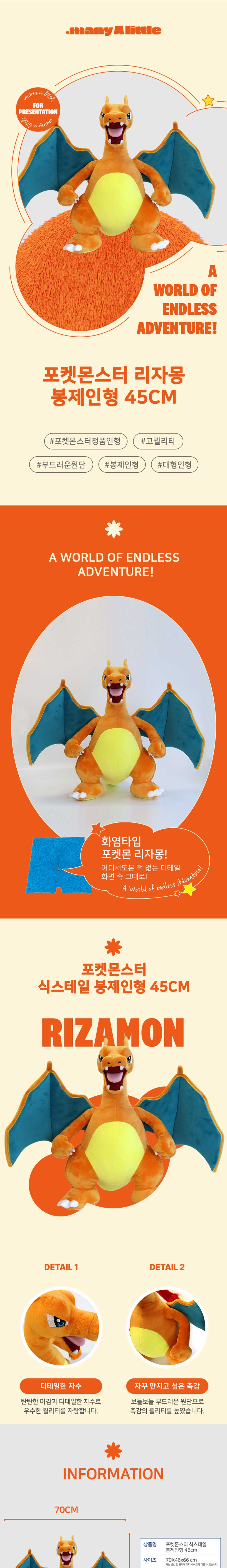 매니어리틀 포켓몬 리자몽 봉제인형 45cm