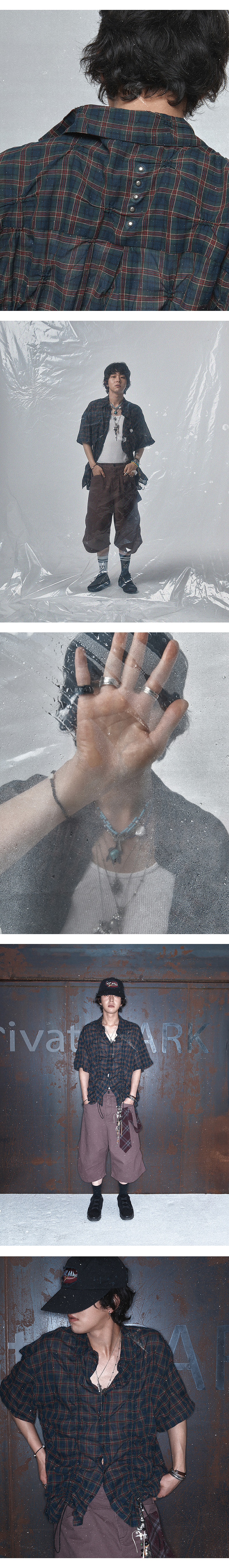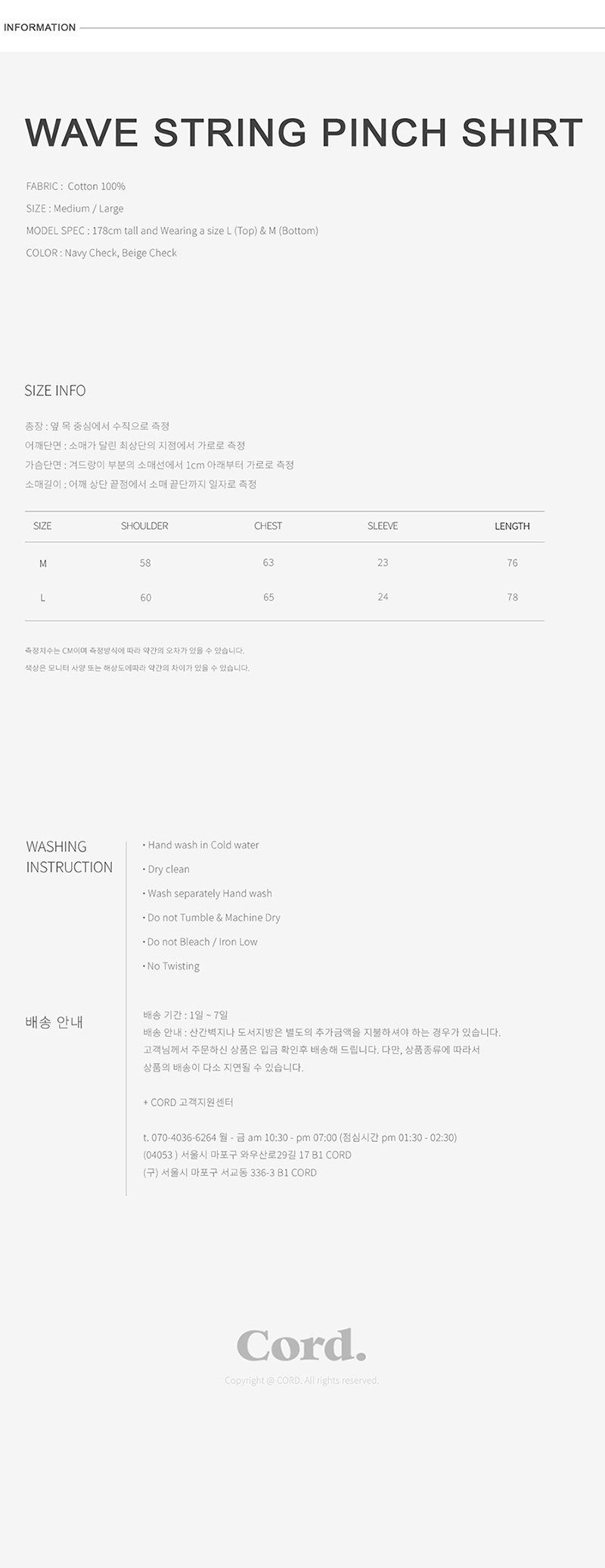 코드 웨이브 스트링 핀치 셔츠 네이비 체크