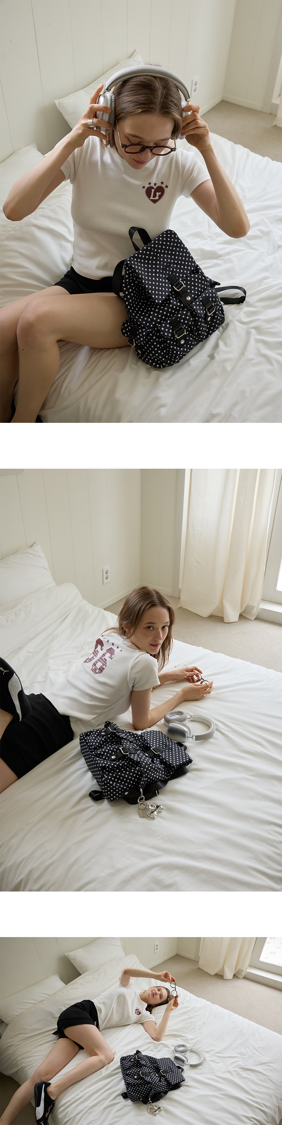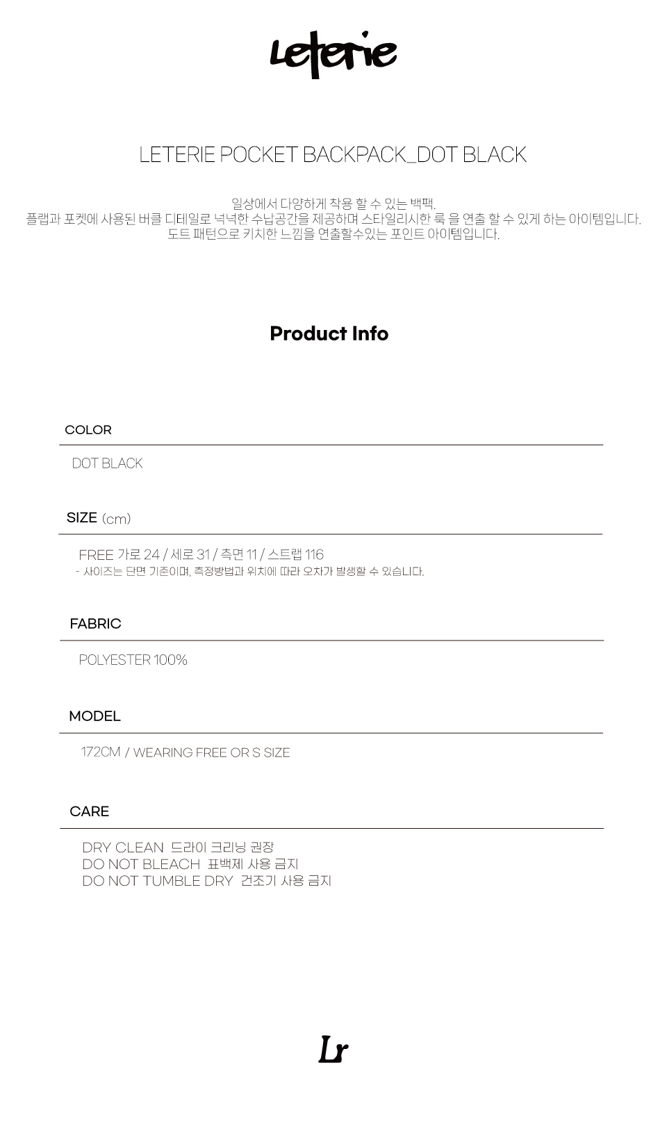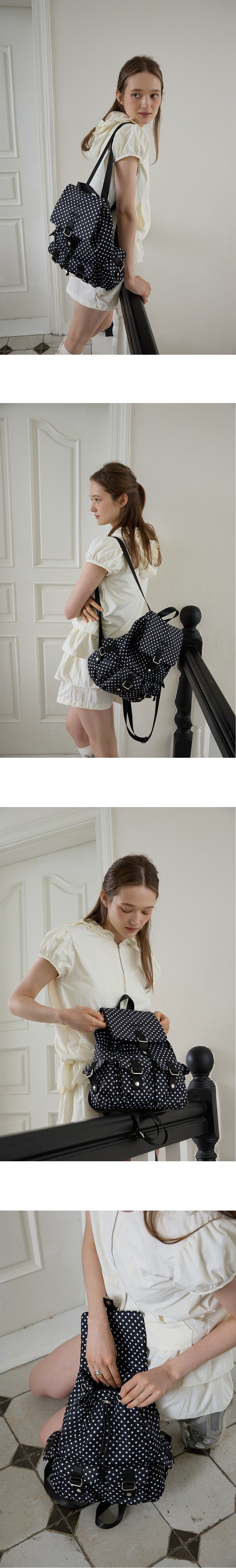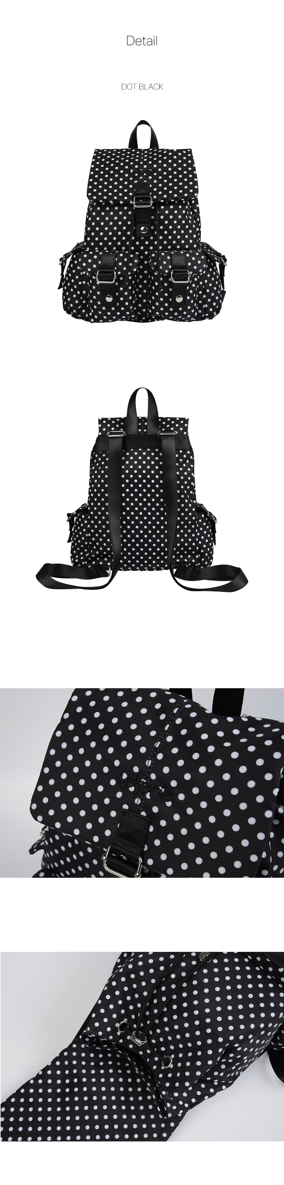 레터리 포켓 백팩 도트블랙