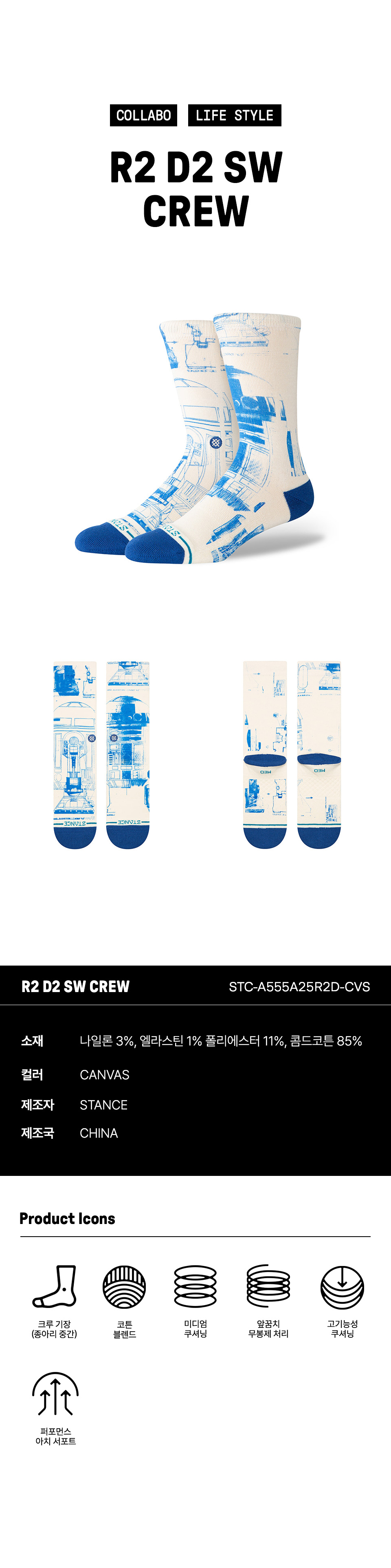 스탠스 STAR WARS X STANCE 유니섹스 R2 D2 SW 크루