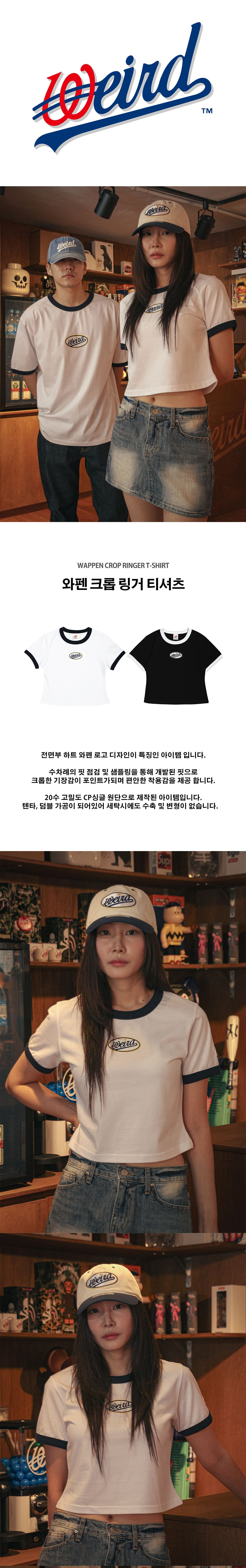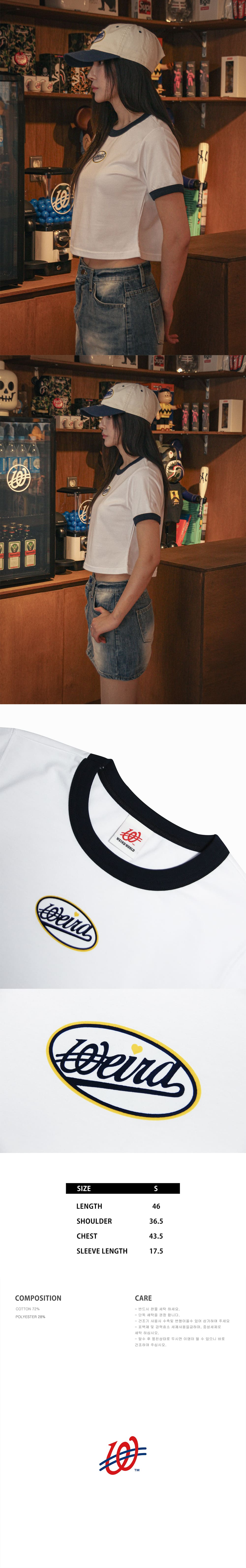 위얼드월드 와펜 크롭 링거 티셔츠 화이트