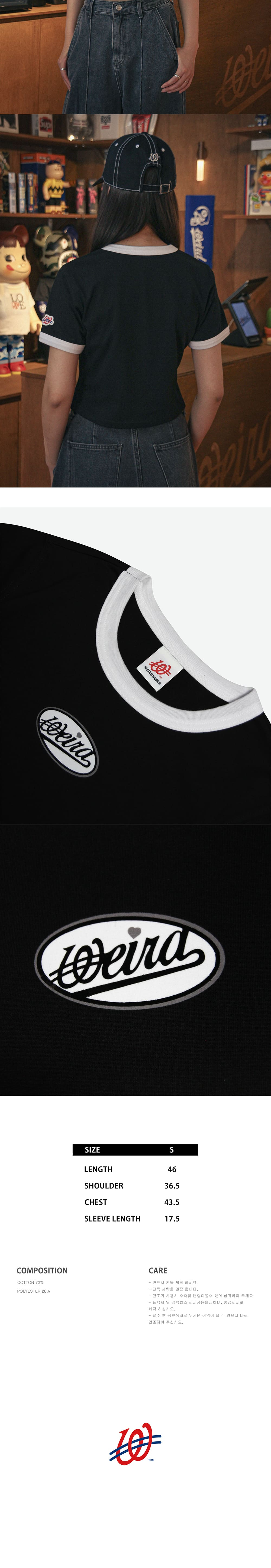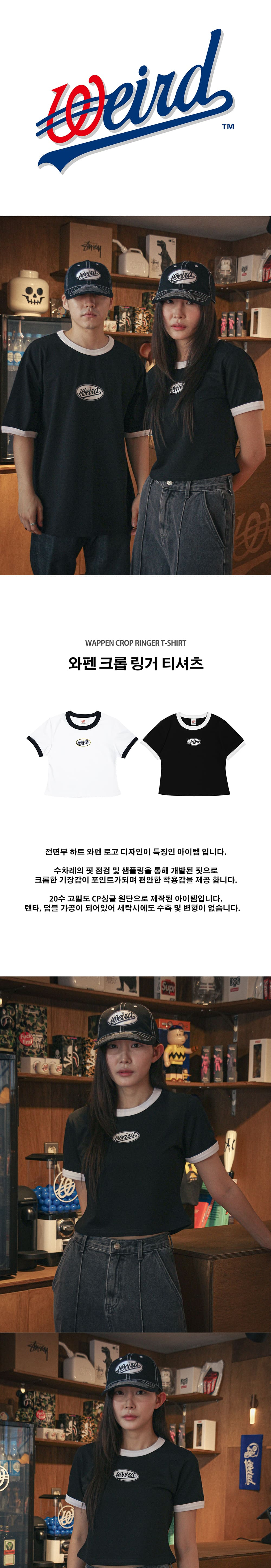 위얼드월드 와펜 크롭 링거 티셔츠 블랙