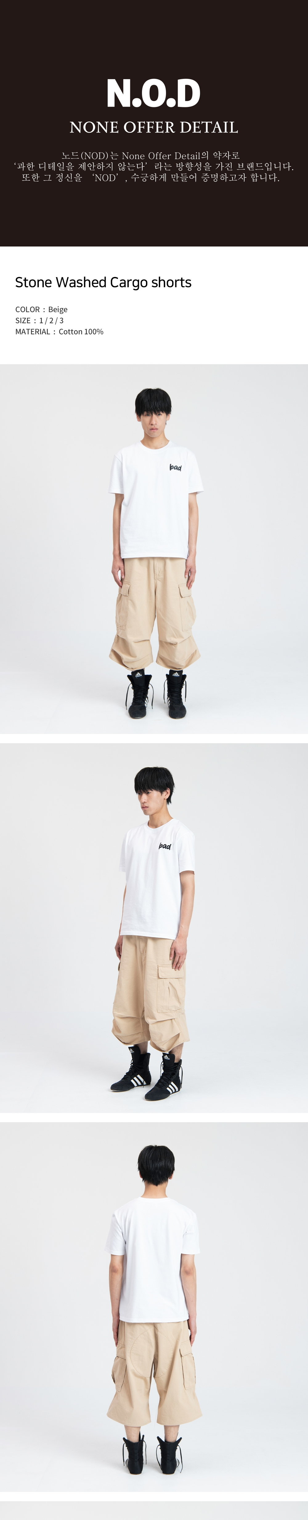 노드 스톤 워시드 카고 쇼츠 베이지