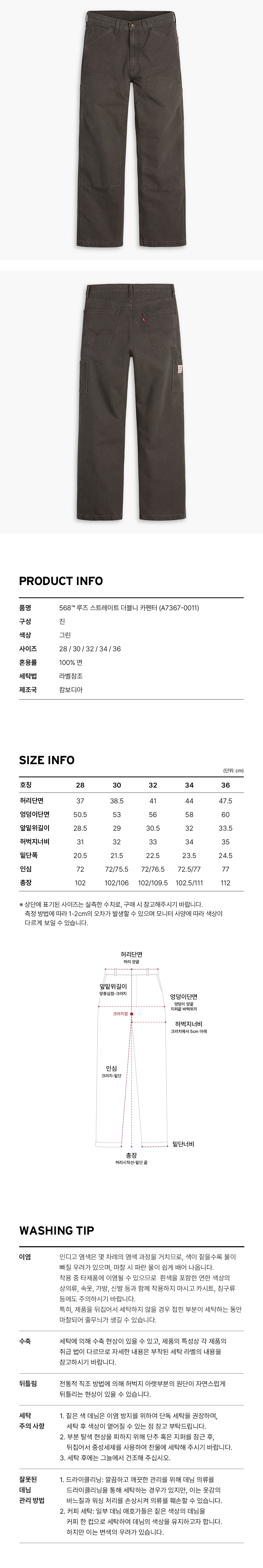 리바이스 568 루즈 스트레이트 더블 니 카펜터 팬츠 그린