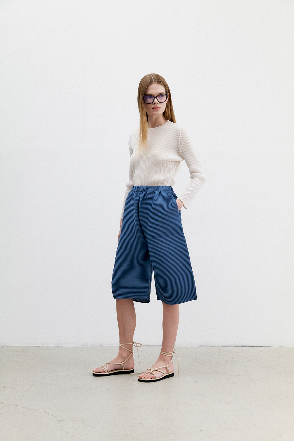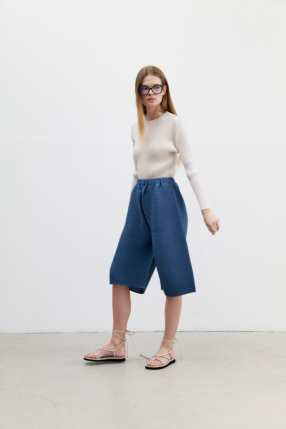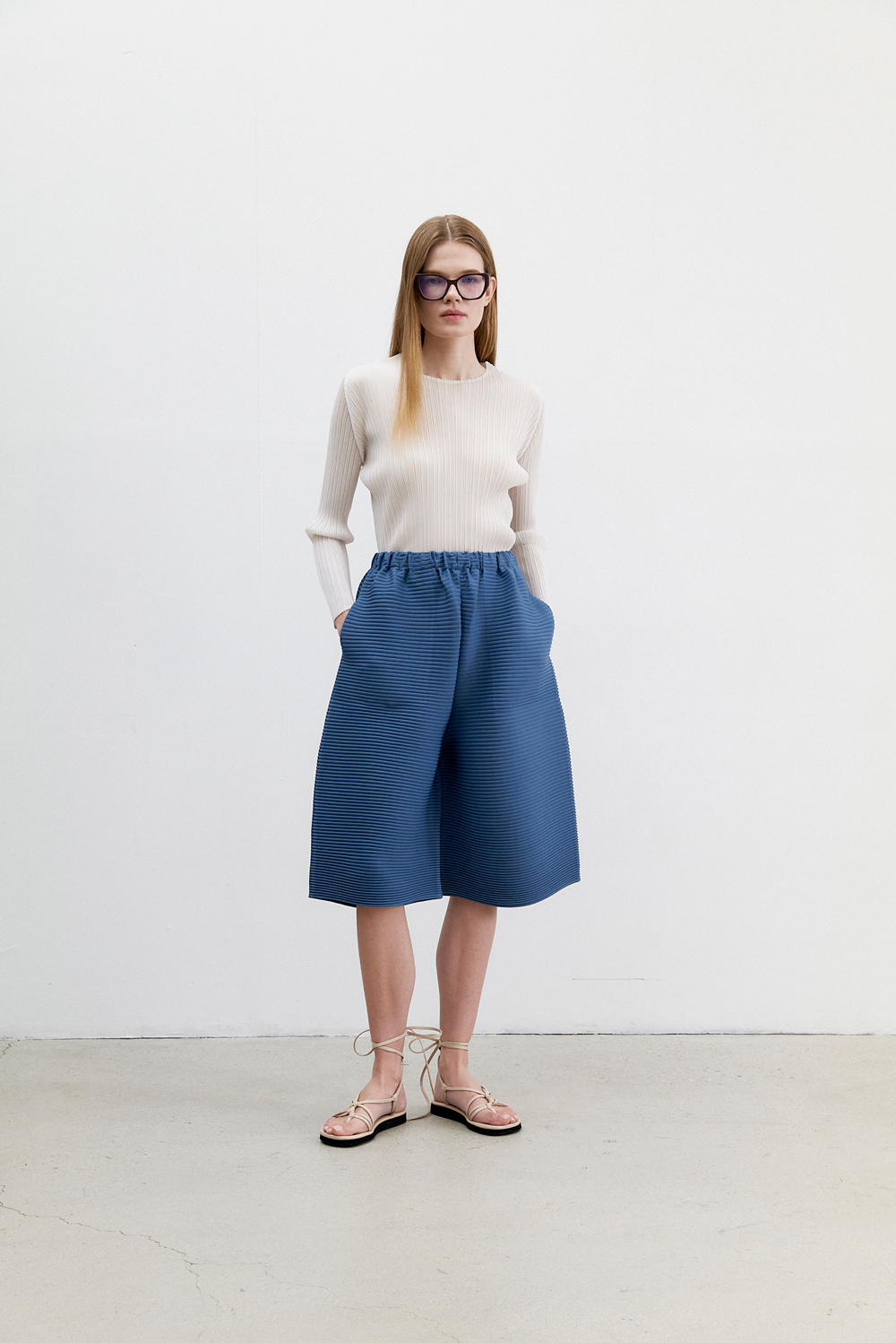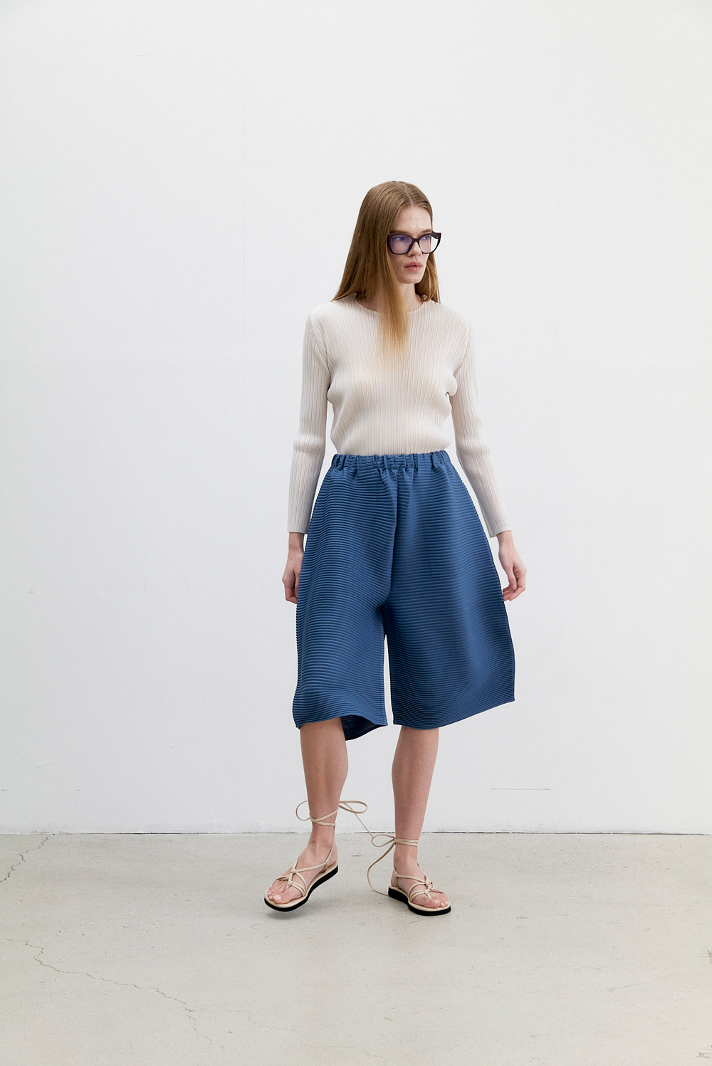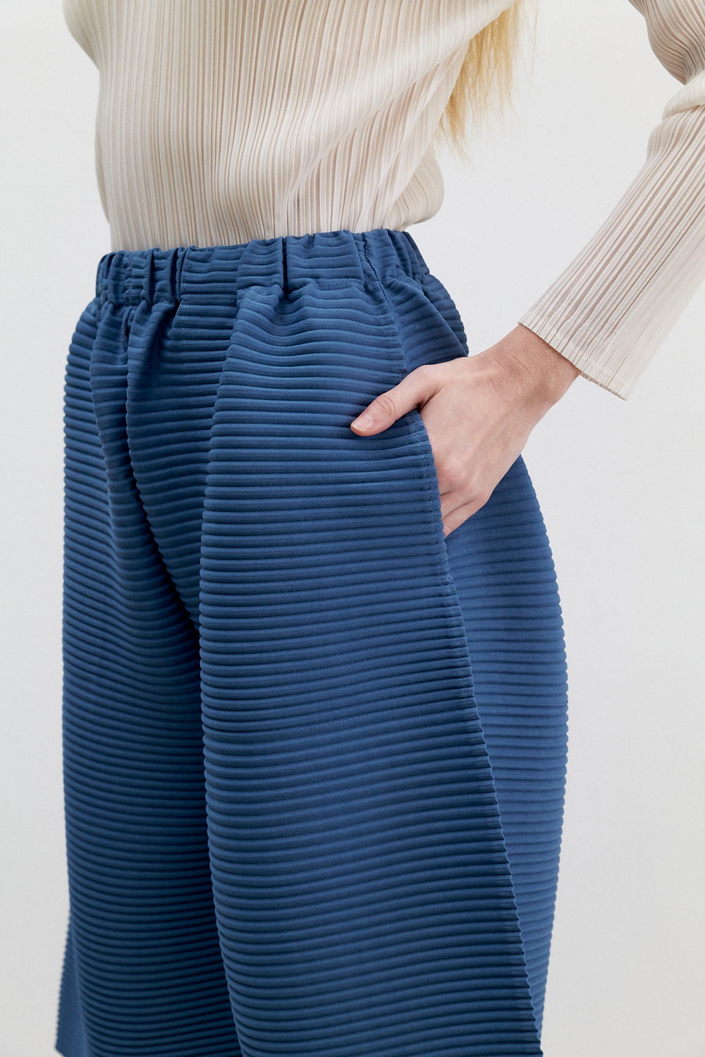 Monplisse Women Horizon Pleats Bermuda Pants Blue