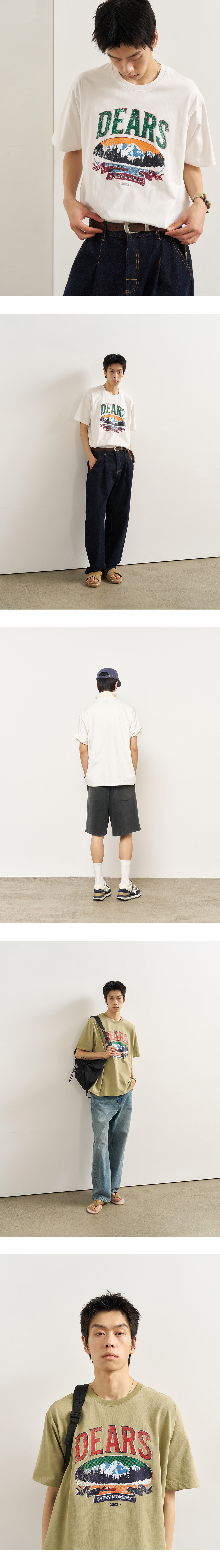 제너럴아이디어 유니섹스 디어스 루즈핏 반팔티 화이트