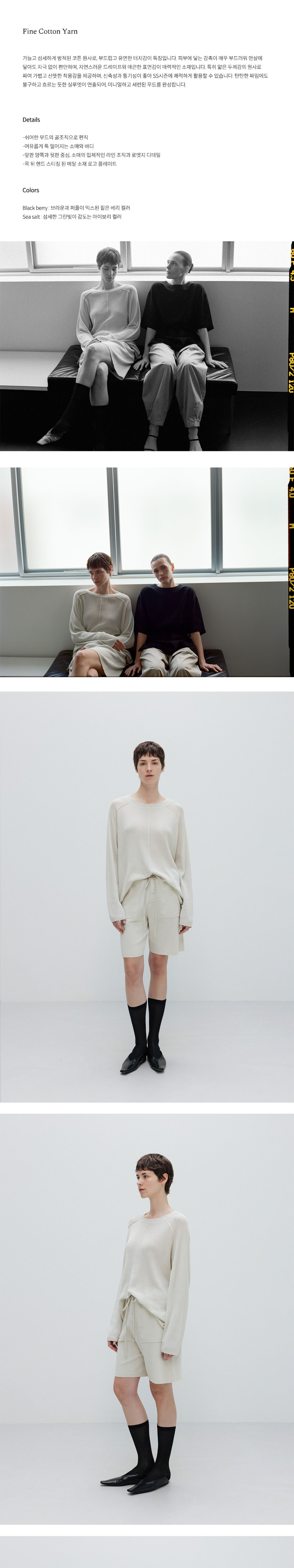 우마뭉 파인 코튼 립 라인 크루넥 풀오버 씨솔트