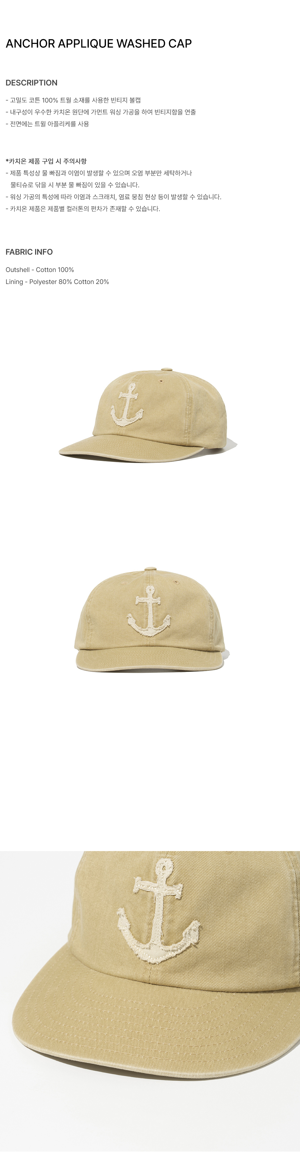 유니폼브릿지 앵커 아플리케 워시드 볼캡 베이지