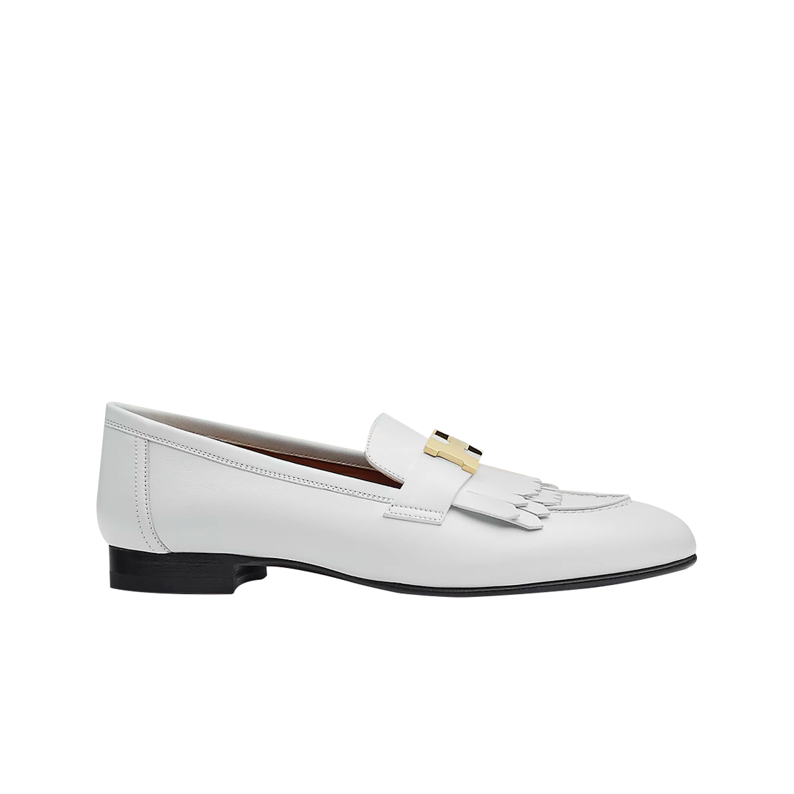 (W) Hermes Royal Loafers Calfskin & Permabrass Blanc