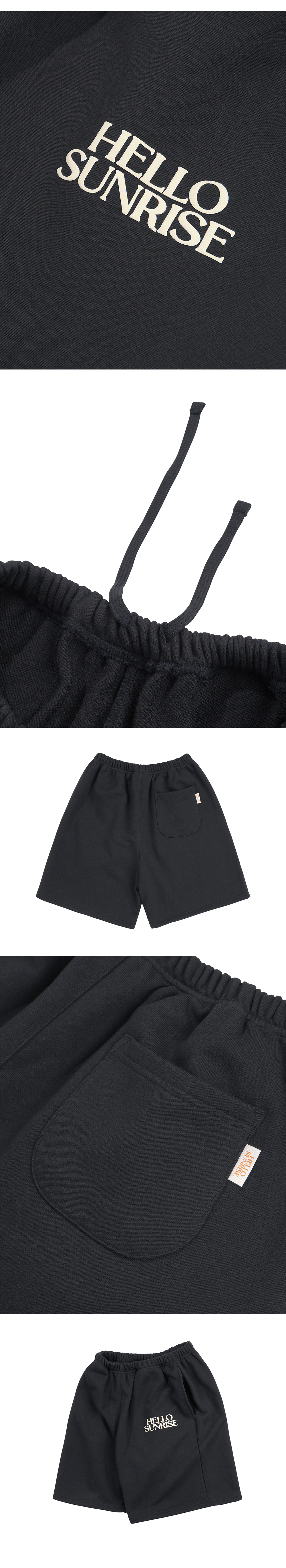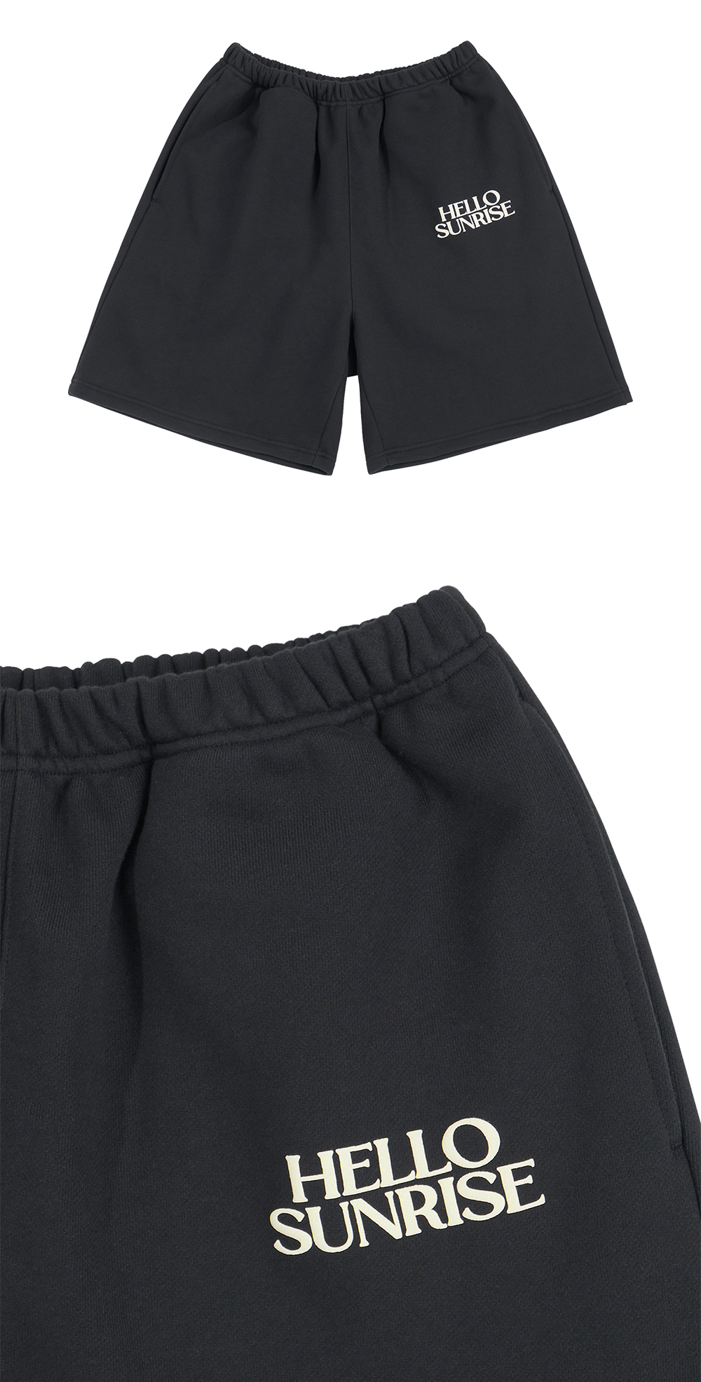 Hello Sunrise 스탠다드 핏의 남녀 공용의 하프 스웻 팬츠입니다. - 전면 헬로선라이즈 타이포 그래픽 - 전면 2개의 포켓 - 후면 1개의 아웃 포켓 - 허리 밴딩으로 사이즈 조절 용이 * 측정 기준에 따라 1-2cm의 차이가 있을 수 있습니다. * Cotton 100% Made in Korea
