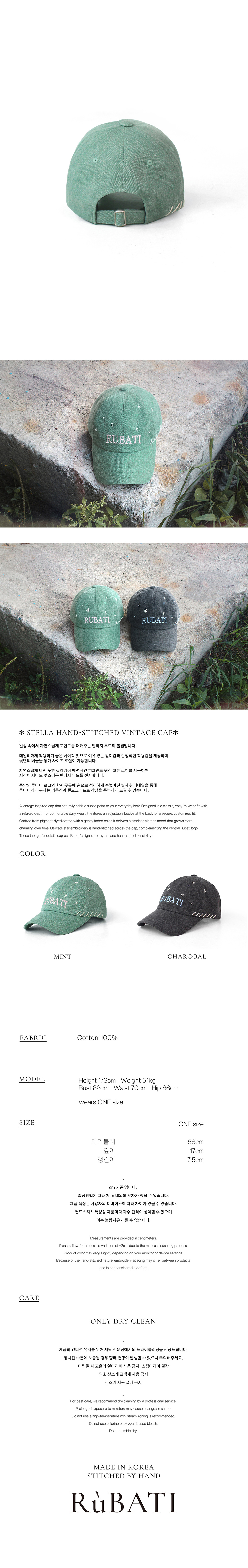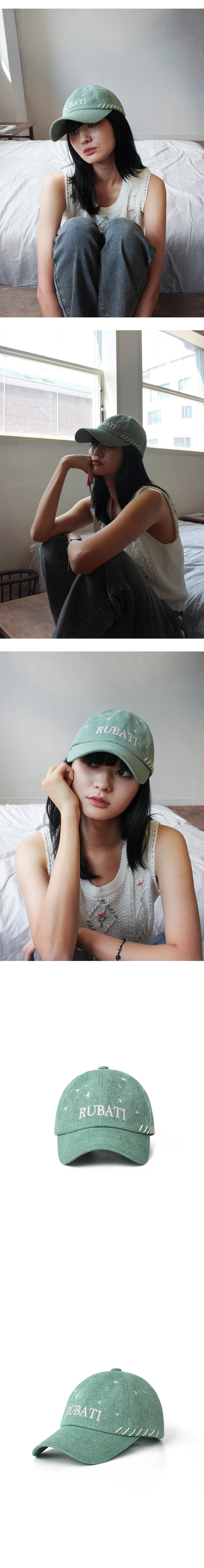 루바티 스텔라 핸드스티치 빈티지 피그먼트 볼캡 민트