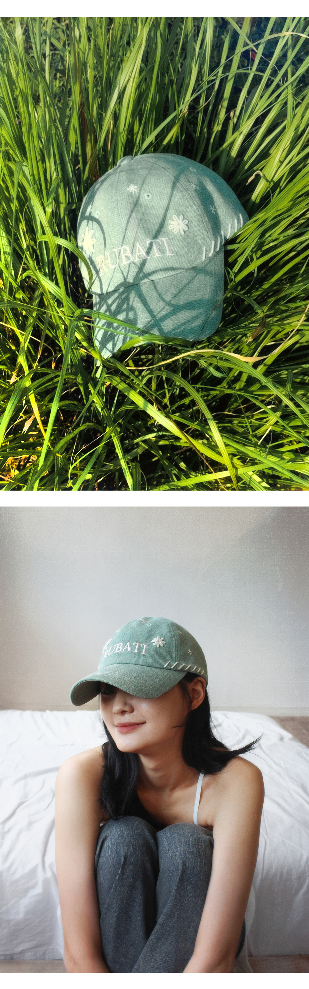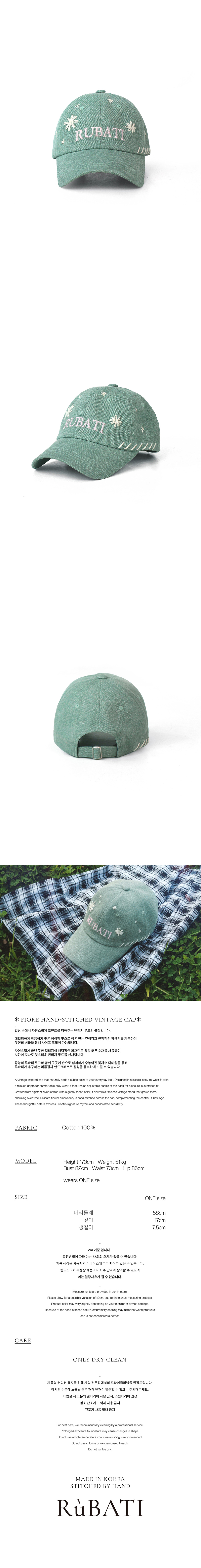 루바티 피오레 핸드스티치 빈티지 피그먼트 볼캡 민트