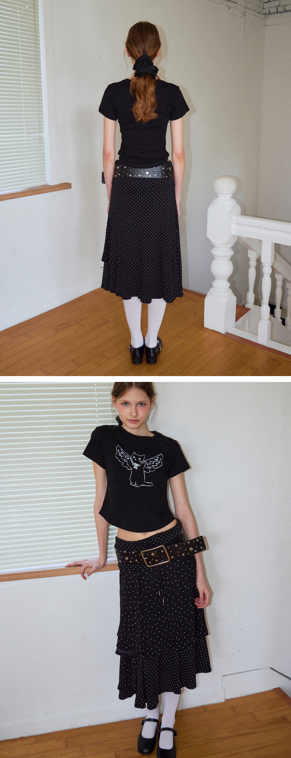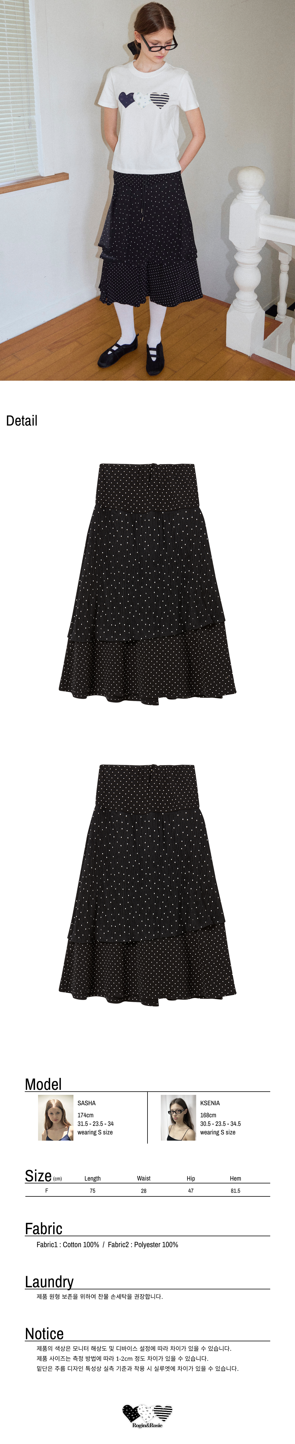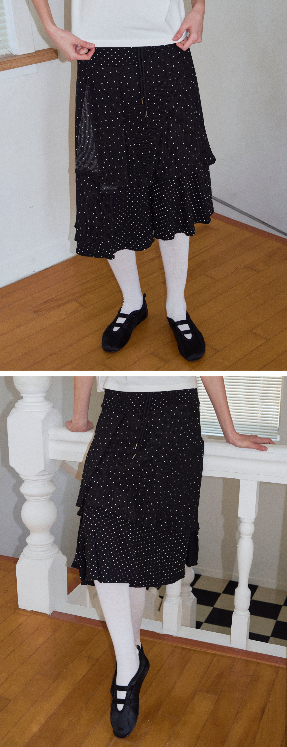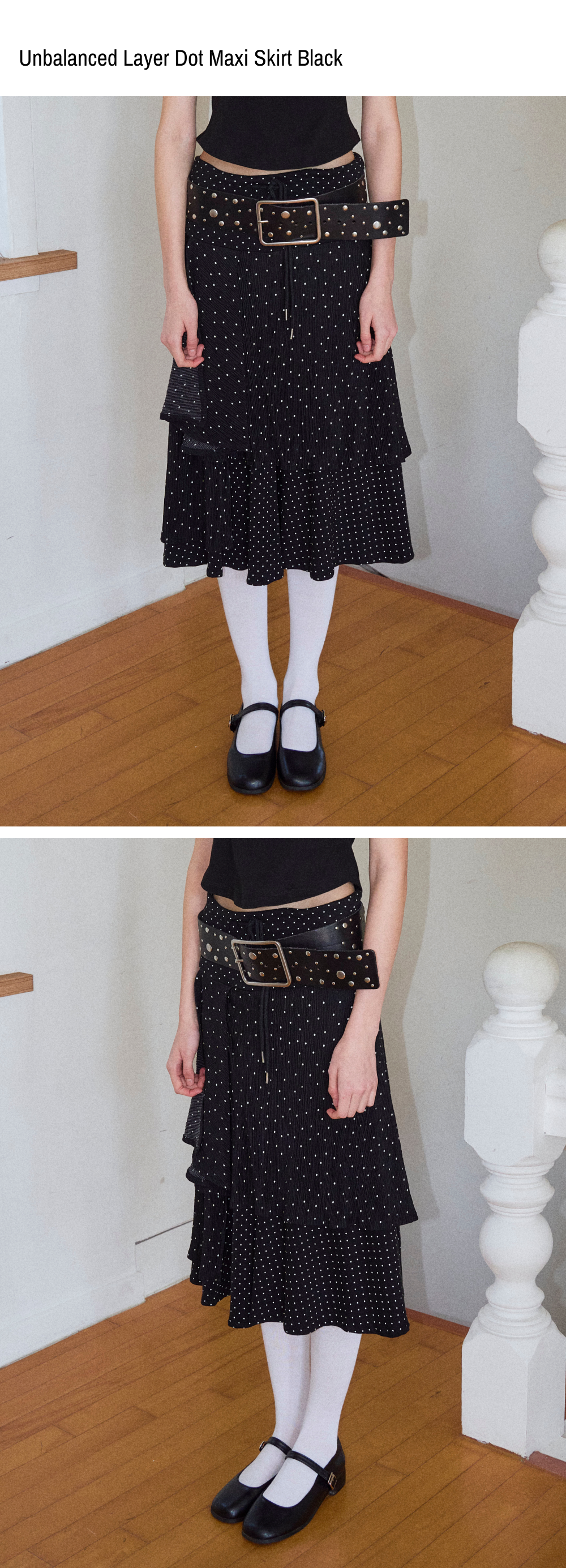 로긴 앤 로지 언발란스 레이어 도트 맥시스커트 블랙