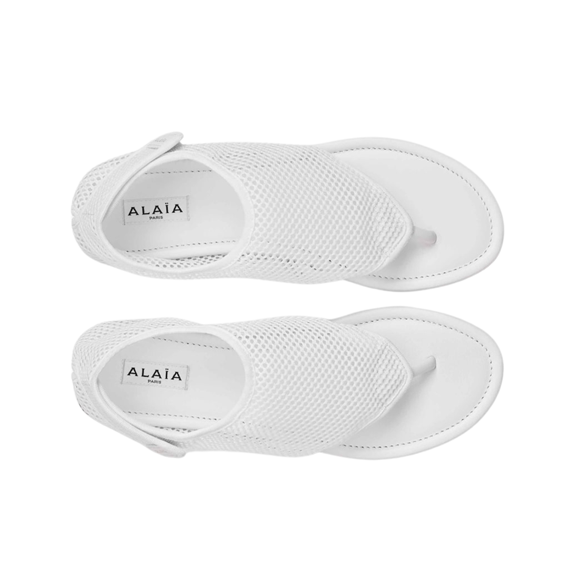 (W) Alaia Thong Sandals in Fishnet Optic White