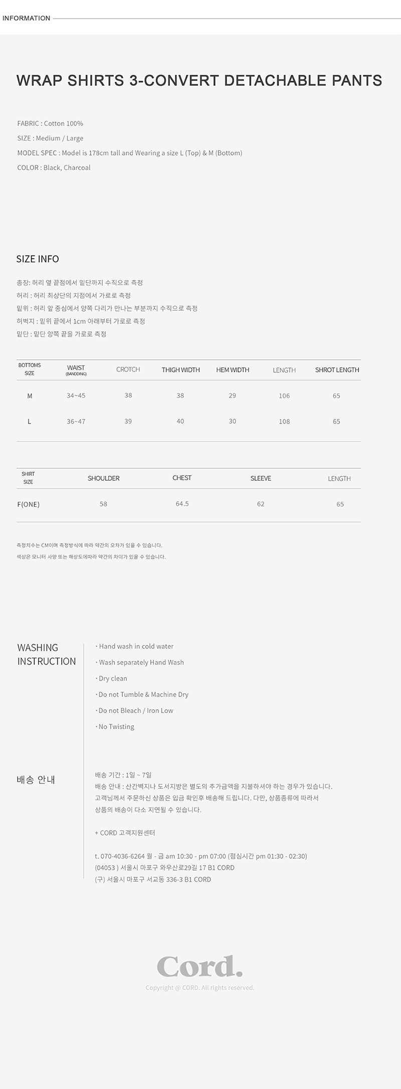 코드 랩 셔츠 3-컨버트 디테쳐블 팬츠 차콜