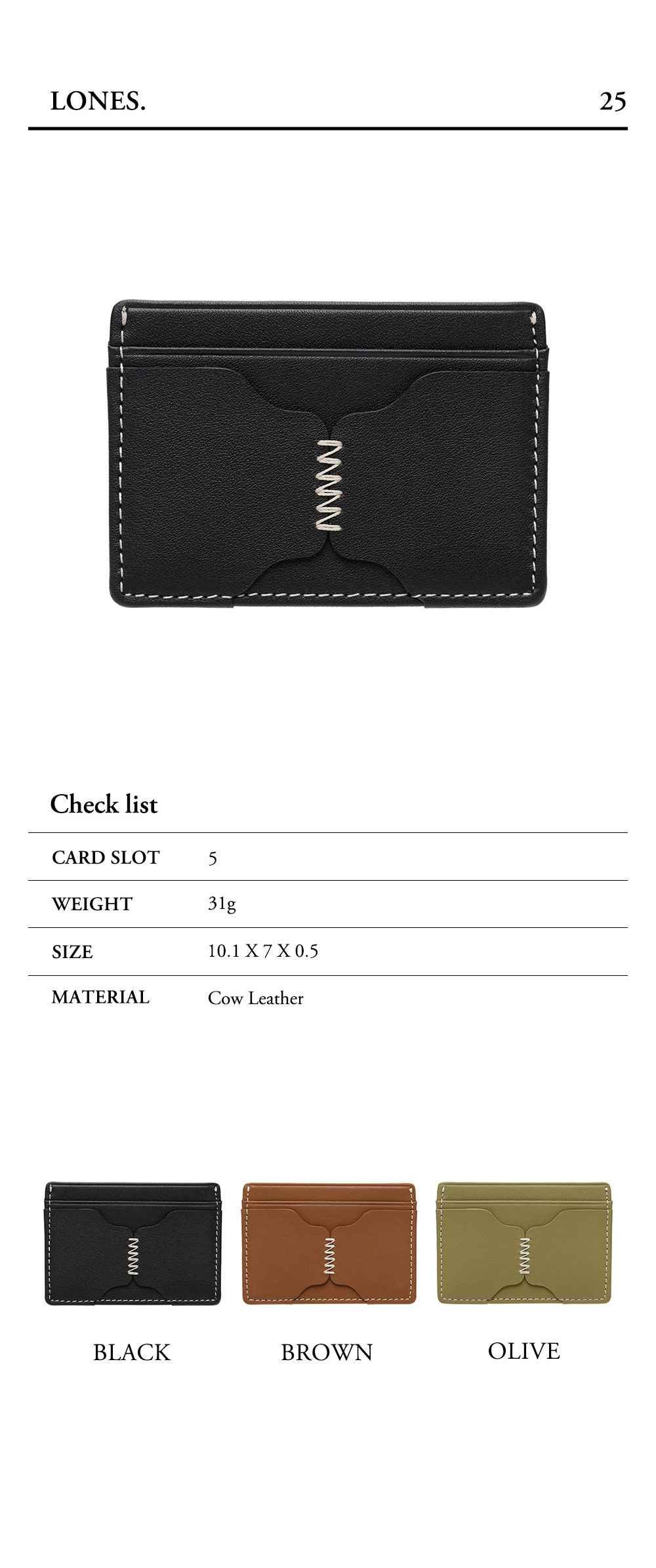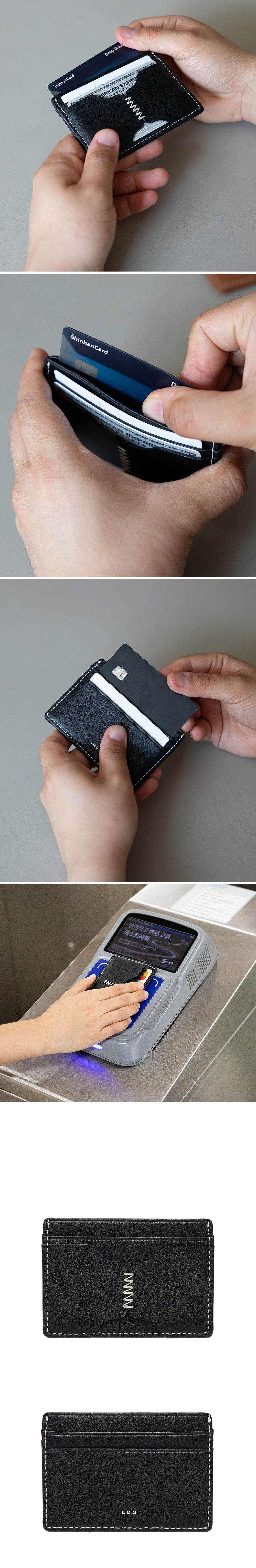 르마스크 론즈 스티치 소가죽 카드지갑 블랙