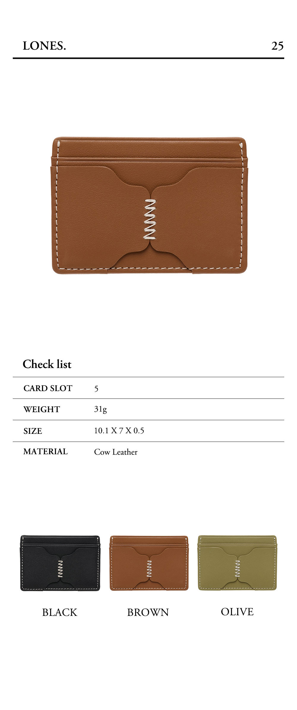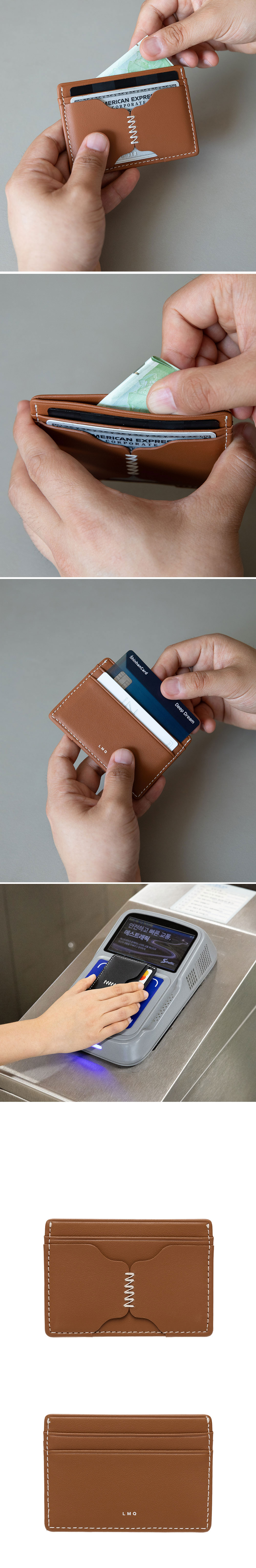 르마스크 론즈 스티치 소가죽 카드지갑 브라운