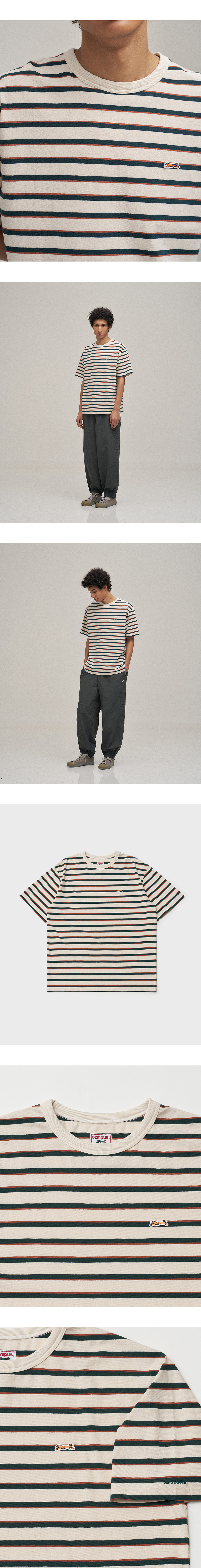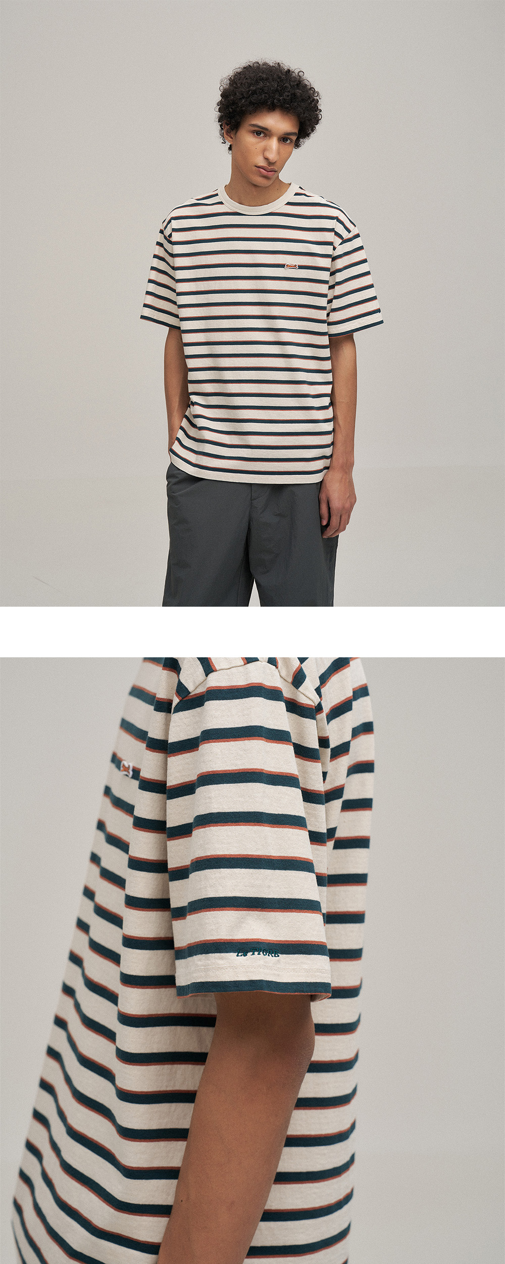 * 워싱 처리한 부드러운 코튼100%를 사용한 반팔 티셔츠 * 약간 여유 있는 스탠다드핏으로 부담 없이 착용 가능 * 세련된 멀티 스트라이프 패턴을 적용하여 레이어드나 단품의 활용도가 매우 높은 제품 184cm / L사이즈 M SIZE 총길이 70 / 어깨 51 / 가슴 57 / 소매 22 L SIZE 총길이 72 / 어깨 53 / 가슴 59 / 소매 23 XL SIZE 총길이 74 / 어깨 55 / 가슴 61 / 소매 24