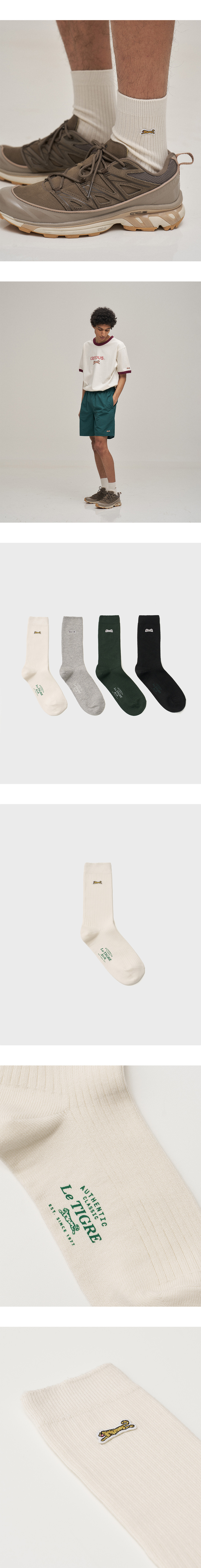 * 착용 시 적당한 기장감의 립 삭스 * 더블 실린더 기계로 작업하여 더욱 촘촘하고 견고하게 만들어진 MADE IN KOREA 144침 삭스 * 사계절 내내 신기 좋은 톡톡한 두께감 * 측면에 르티그레 호랑이 자수 와펜 포인트 * 발바닥 부분 개발한 르티그레 아트웍 전사 프린팅 발 길이 22cm / 발목 길이 17cm