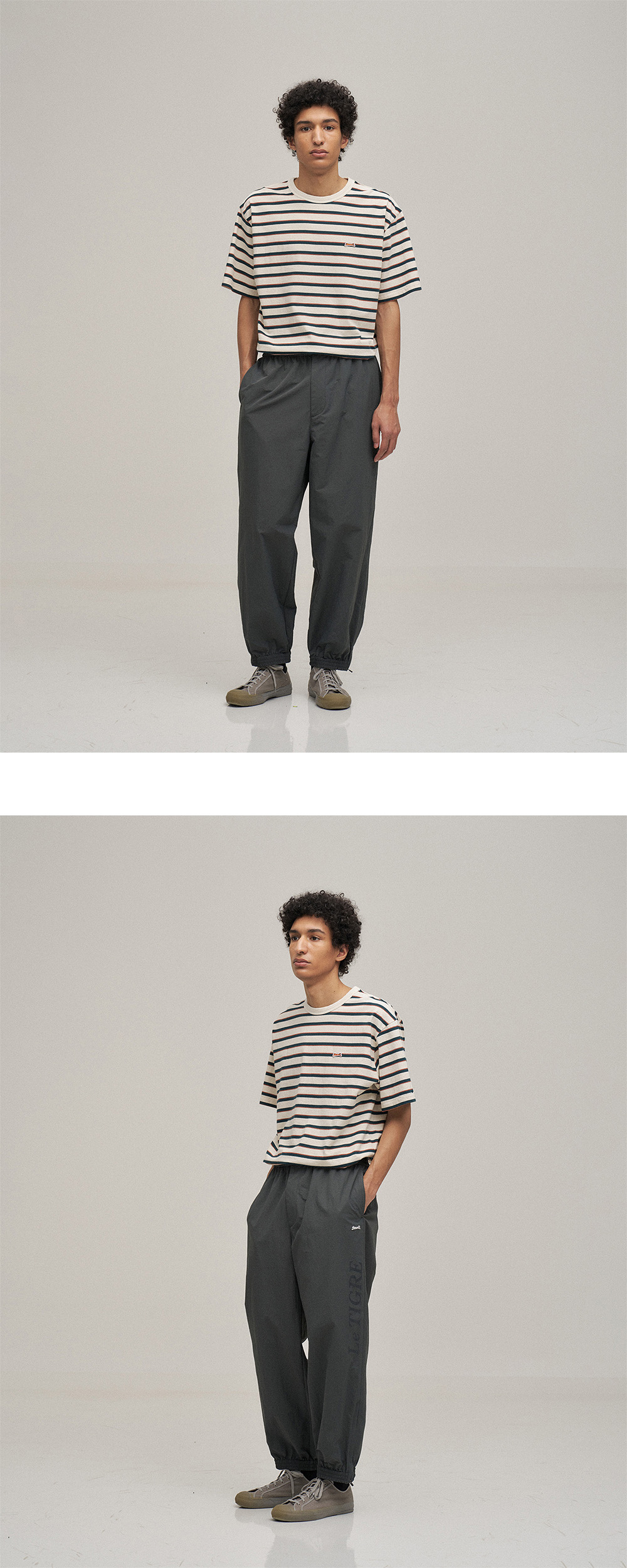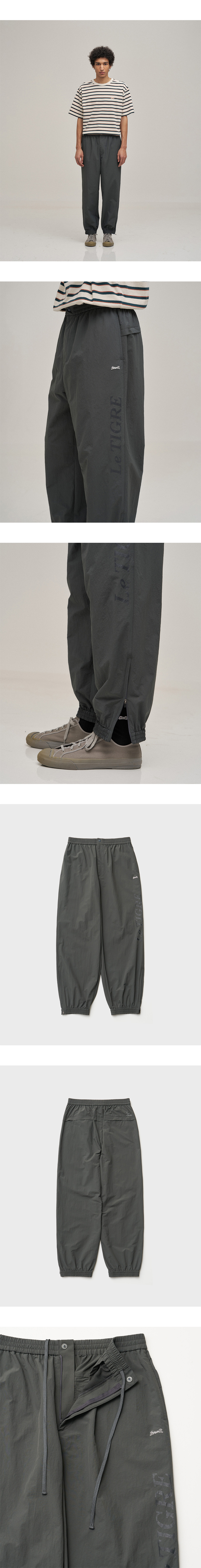 * 트랙 셋업 자켓과 셋업으로 착용이 가능한 트랙 팬츠 * 내구성이 좋고 바스락거리는 텍스쳐감의 원단 사용, 메쉬 안감 사용하여 통기성이 좋음 * 신축성 있는 허리 밴딩과 밑단 밴딩 및 밑단쪽 지퍼로 스포티하고 편안하게 연출이 가능함 * 트랙 자켓과 동일하며 전면부 르티그레 레터링 투명프린트를 적용하여 빛 반사에 은은히 드러나 과하지 않는 포인트을 부여함 * 밑단쪽 지퍼 트임으로 활동성과 스포티함을 부여함 * 후면부 뒷포켓 지퍼는 보이지 않게 하여 실용성과 미니멀함을 추구 * 후면부 톤온톤 레터링 직자수를 시용하여 전반적으로 은은한 포인트를 부여 * 르티그레 레터링 로고가 각인된 재팬 선그립 사용 * YKK 지퍼사용 178cm / L사이즈 184cm / L사이즈
