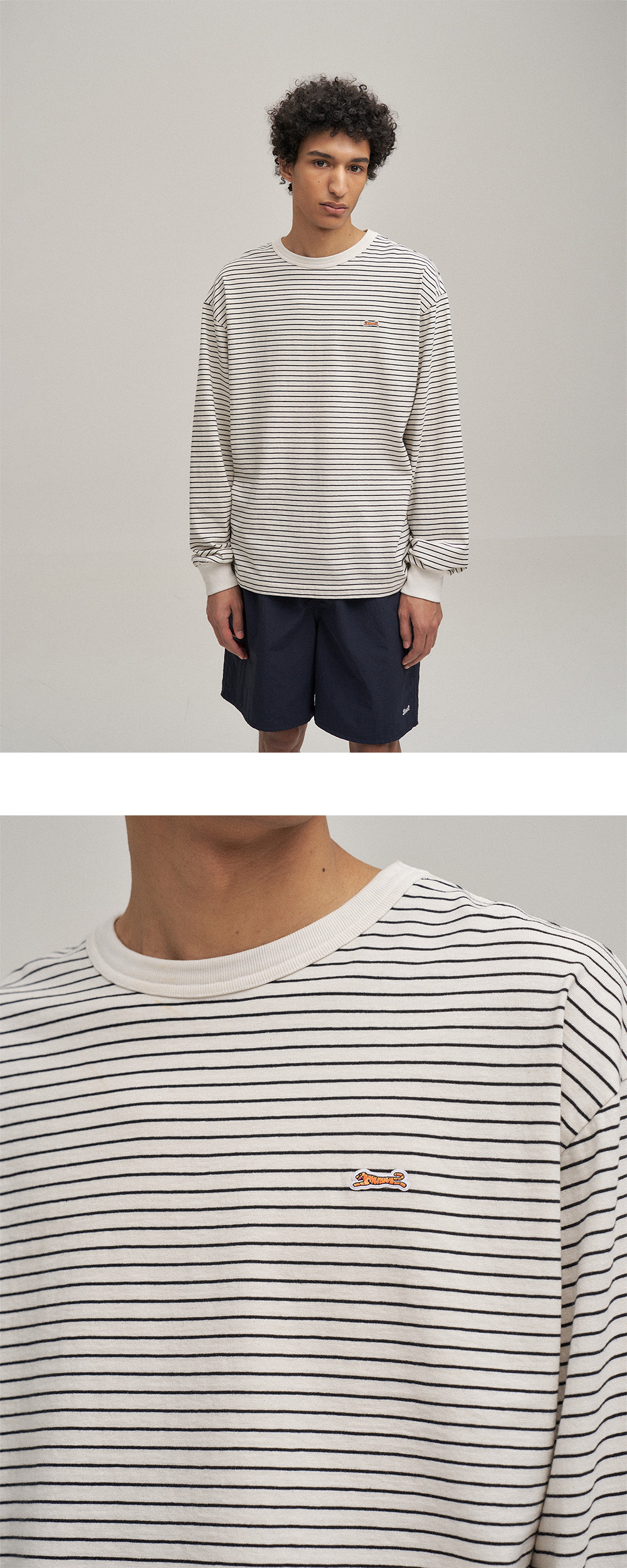 * 코튼 100%로 부드럽고 구김이 적은 소재를 사용 * 손목 시보리로 안정감 있는 착용감을 주며, 캐주얼하게 연출 * 여유로운 핏으로 편안하고 캐쥬얼한 무드를 완성 * 전면부 가슴 자수 와펜, 소맷단 직자수 작업으로 포인트 * 사계절 내내 웨어러블하게 착용할 수 있는 색감과 스트라이프 패턴 * 레이어드나 단품의 활용도가 매우 높은 제품 184cm / L사이즈 M SIZE 총길이 70.5 / 어깨 53 / 가슴 55 / 소매 63 L SIZE 총길이 72.5 / 어깨 55 / 가슴 57 / 소매 64 XL SIZE 총길이 74.5 / 어깨 57 / 가슴 59 / 소매 65