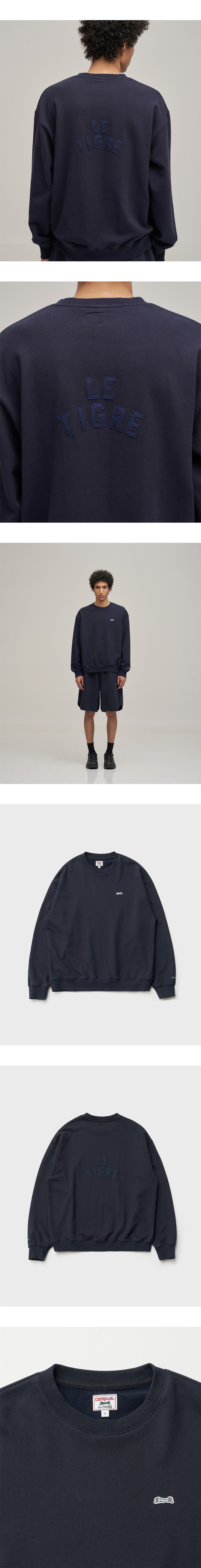 * 여유있는 루즈핏 패턴을 적용하여 편안하게 착용 가능 * 부드럽게 탄탄한 CP쭈리를 사용하여 편안한 착용감과 동시에 자연스러운 핏을 구현 * 텐타, 워싱 덤블가공으로 세탁 후 변형을 최소화 * 후면부에 레터링 아플리케 기법으로 포인트를 줘서 심심할 수 있는 스웻 셔츠를 벗어나 포인트를 줄 수 있는 스웻 셔츠 * 전면부 가슴에 자수 와펜, 소매 직자수 포인트 * 헤링본 테이프 마감으로 목 늘어짐 방지 * 시접 부분 갈라상봉 스티치로 옷의 내구성을 높임 180cm / XL사이즈 M SIZE 총길이 65.5 / 어깨 54 / 가슴 58 / 소매 59 L SIZE 총길이 67.5 / 어깨 56 / 가슴 60 / 소매 60 XL SIZE 총길이 69.5 / 어깨 58 / 가슴 62 / 소매 61 * 사이즈 측정 기준 (단위:cm) 총길이 : 옆목점~밑단끝