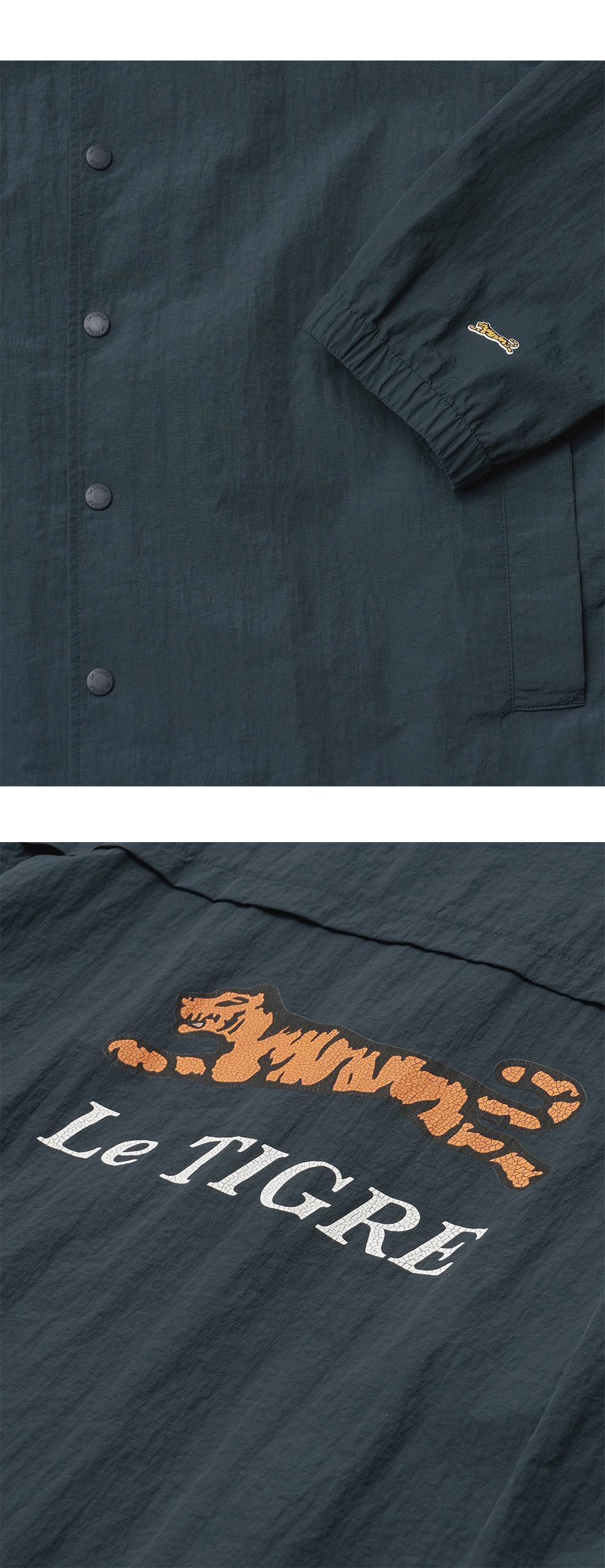 * 야구나 축구 경기에서 코치들이 착용해서 유래된 코치자켓은 본연의 스포티함을 넘어서 일상에서 자유롭게 코디하기 좋은 자켓 * 후면부에 크랙 기법 나염프린트를 사용하여 포인트를 주며 빈티지한 무드를 생성함 * 적당한 세미 오버핏으로, 밑단 스트링을 사용해 다양한 핏과 무드 연출 가능 * 은은한 광택감이 돌고 와샤끼가 적당히 있는 트윌 나일론 원단을 사용 * 르티그레 레터링 로고가 각인된 재팬 선그립 사용 180cm / L사이즈 M SIZE 총길이 71.8 / 어깨 54.5 / 가슴 64 / 소매 61.7 L SIZE 총길이 73.8 / 어깨 56.5 / 가슴 66.5 / 소매 62.7 XL SIZE 총길이 75.8 / 어깨 58.5 / 가슴 69 / 소매 63.7