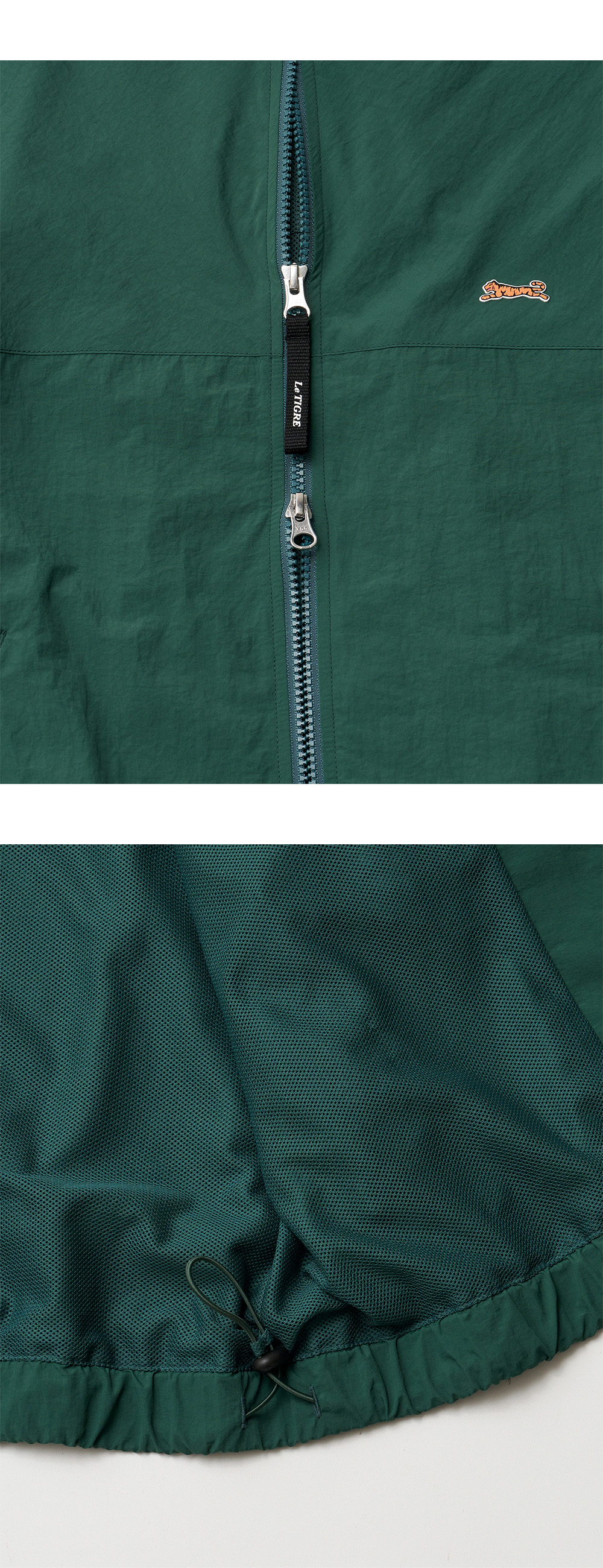 * 90년대 레트로한 감성과 편안한 실루엣을 연출 할 수 있는 트랙 자켓 * 내구성이 좋고 바스락거리는 텍스쳐감의 원단 사용, 메쉬 안감 사용하여 통기성이 좋음 * 자켓 소매에 빛 반사에 따라 은은히 드러나는 투명 잉크프린트를 적용하여 레트로 감성의 포인트를 부여 * 르티그레 트랙 셋업 쇼츠, 트랙 셋업 팬츠와 셋업으로 착용 가능하며 데일리 웨어로 다양한 룩에 활용하기 좋음 * 전면부 가슴에 르티그레 시그니처 로고인 호랑이 고무와펜을 부착하여 브랜드 무드를 향상 시키고 스포티하고 빈티지한 느낌을 부여함 * 활동성이 좋고 다양한 연출이 가능한 투웨이 YKK 지퍼 사용 * 르티그레 레터링 로고 프린트 지퍼 테잎 풀러 사용 183cm / L사이즈 M SIZE 총길이 68 / 가슴 61.5 / 소매 86.5 L SIZE 총길이 70 / 가슴 64 / 소매 89 XL SIZE 총길이 72 / 가슴 66.5 / 소매 91.5