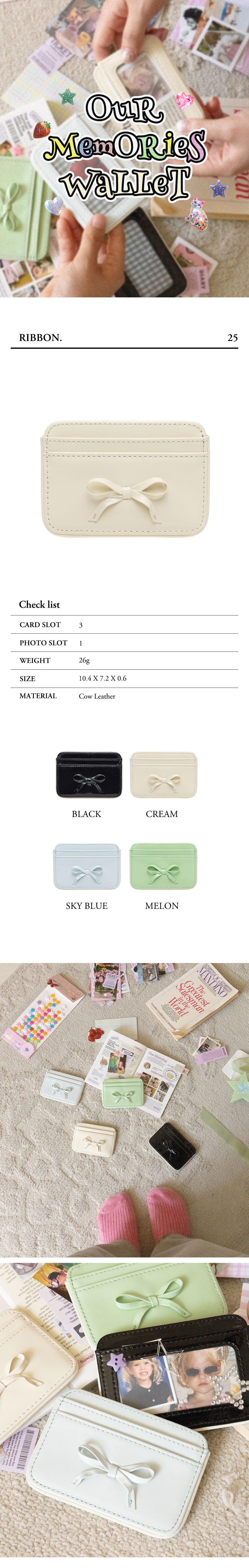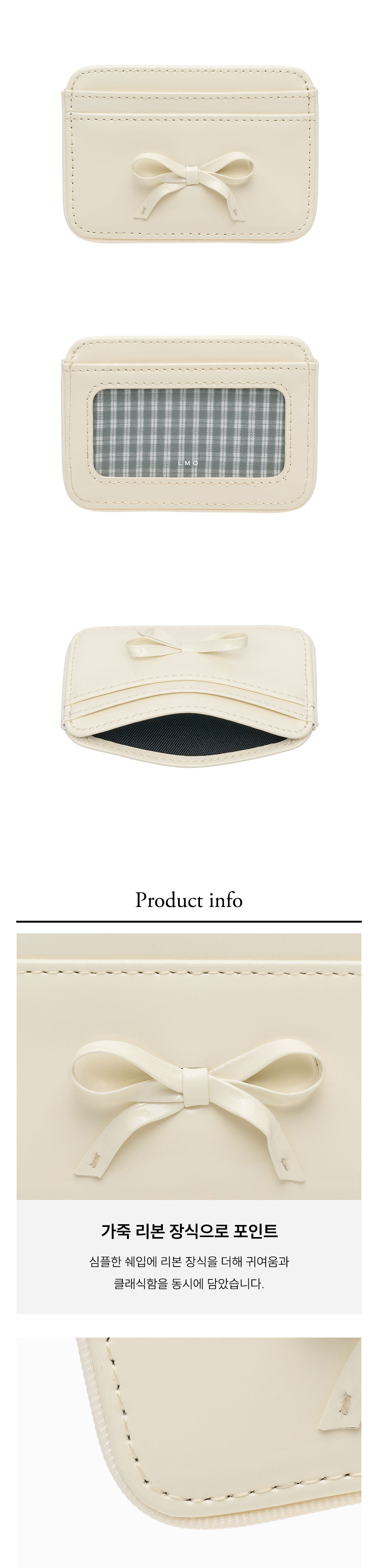 르마스크 리본 파이핑 소가죽 카드지갑 크림