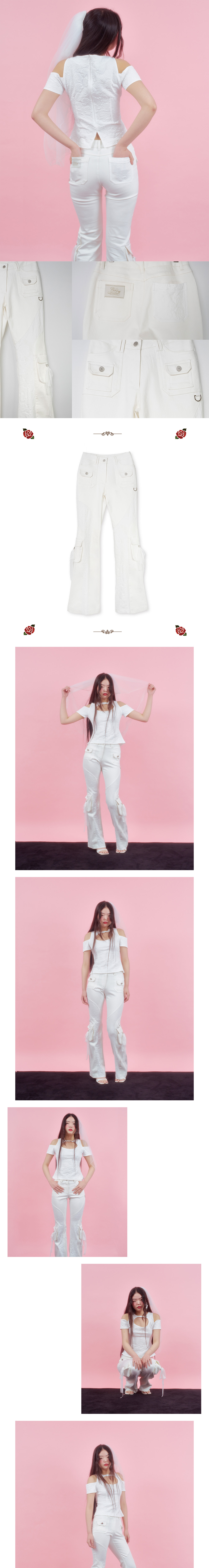 엘프엘프엘프아카이브스 로즈 패치 부츠컷 팬츠 아이보리