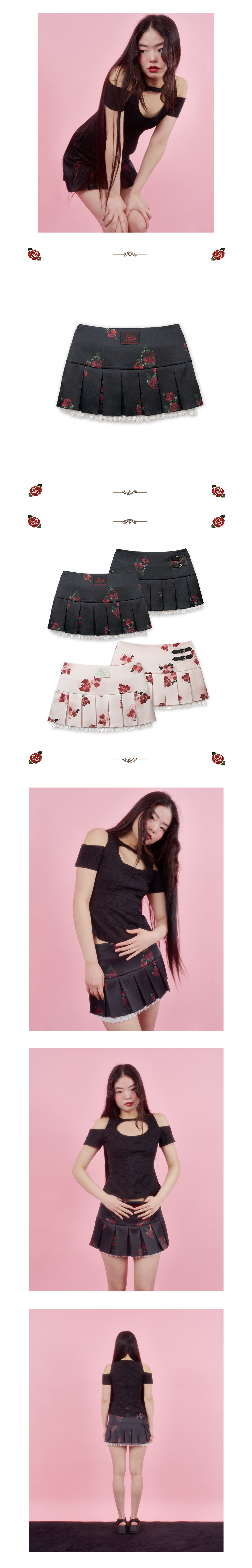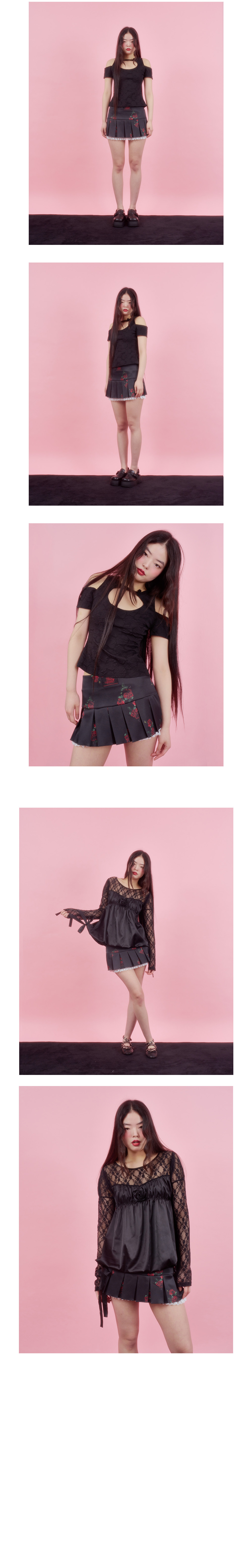 엘프엘프엘프아카이브스 플로럴 레이스 플리츠 스커트 블랙