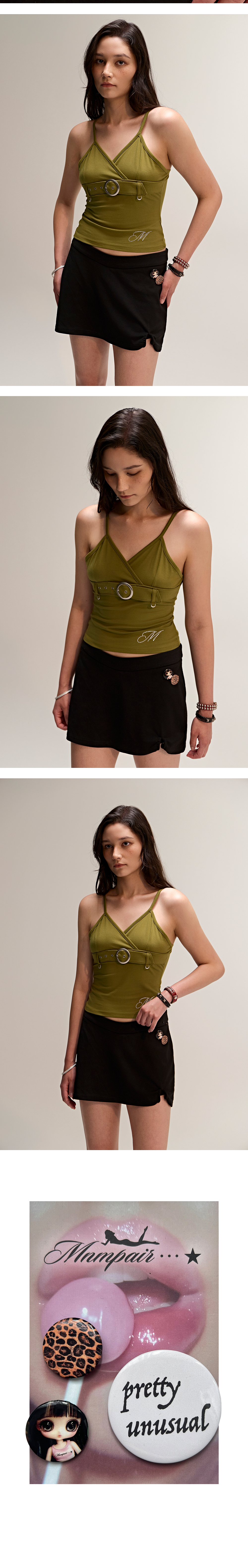 Y2K와 2010 core 무드를 재해석한 미니멀페어의 핀버튼 세트입니다. 아이코닉한 이미지와 타이포, 레오파드 패턴이 혼합된 구성을 통해 과감하고 위트 있는 스타일링 연출이 가능합니다. 3종의 버튼은 모두 스테인리스 바디 위에 광택 코팅 페이퍼(glossy coated paper)를 덧입힌 구조로 제작되어 빛 반사에 따라 선명하고 매끄러운 표면감을 보여줍니다. - pretty unusual 텍스트 버튼 - 레오파드 패턴 버튼 - 블랙 헤어돌 그래픽 버튼 아우터, 가방, 모자 등 다양한 아이템에 부착하여 자신만의 무드를 드러낼 수 있는 액세서리 아이템입니다.
