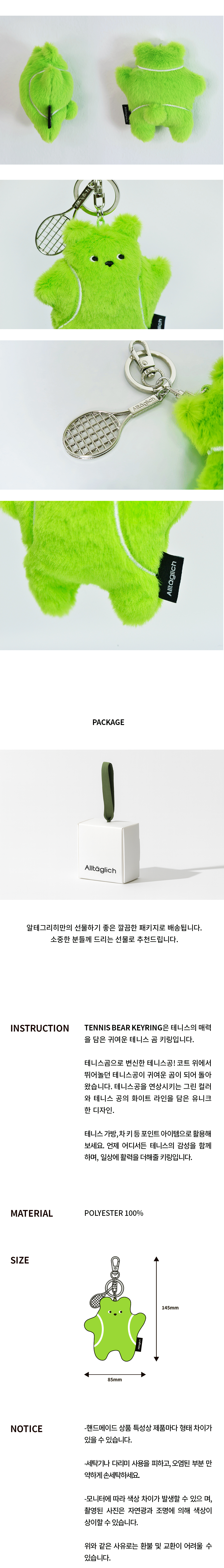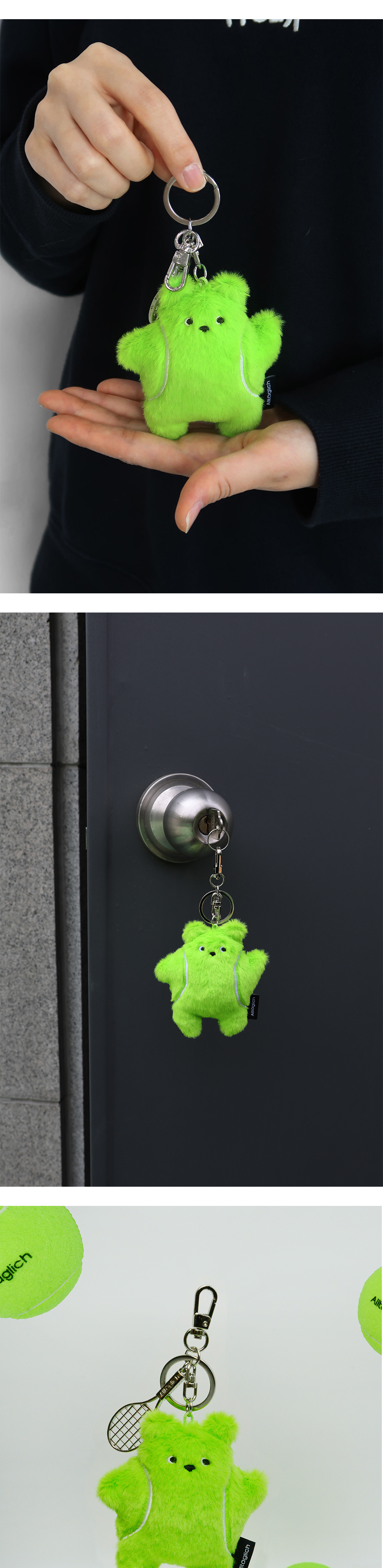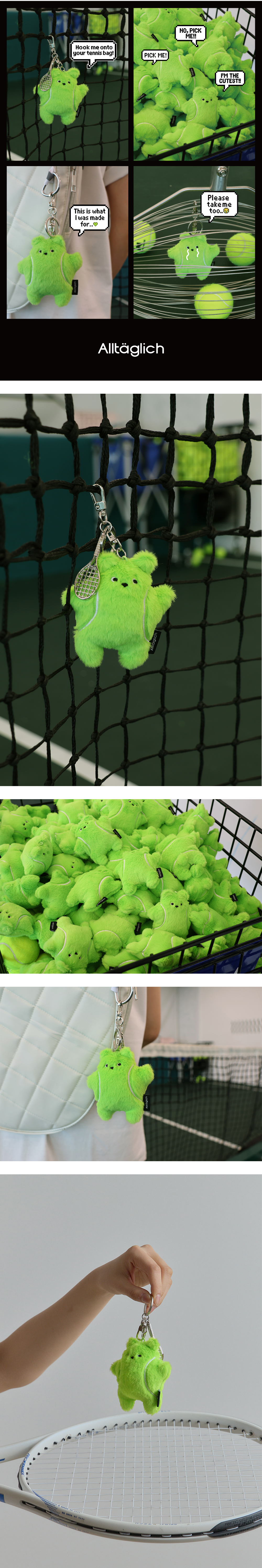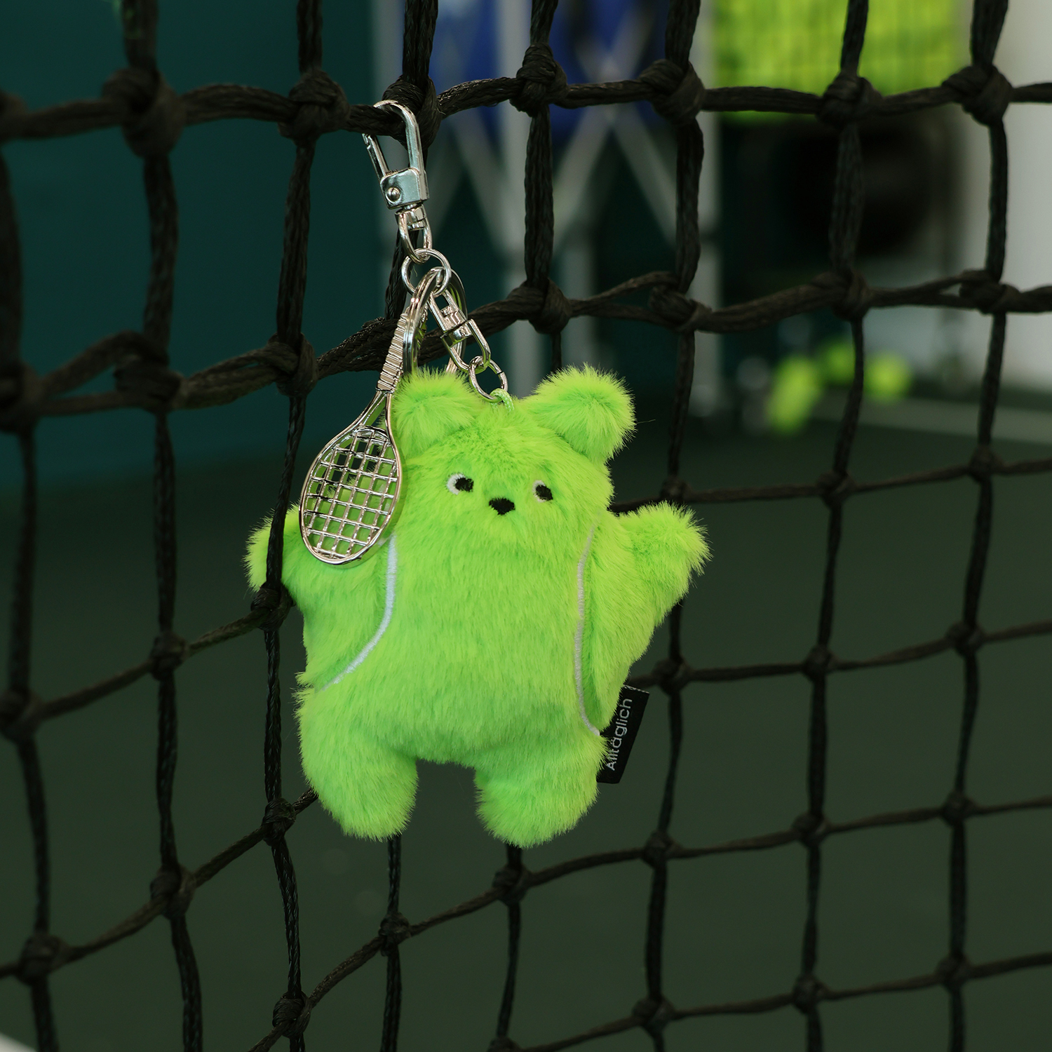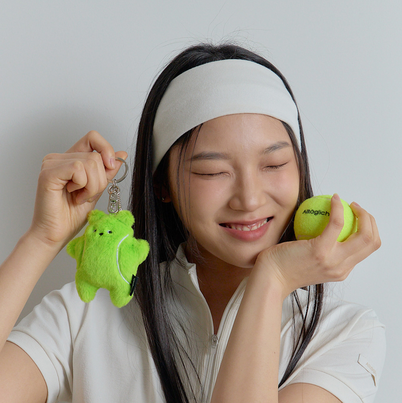 TENNIS BEAR KEYRING은 테니스의 매력을 담은 귀여운 테니스 곰 키링입니다. 테니스곰으로 변신한 테니스공! 코트 위에서 뛰어놀던 테니스공이 귀여운 곰이 되어 돌아 왔습니다. 테니스공을 연상시키는 그린 컬러와 테니스 공의 화이트 라인을 담은 유니크 한 디자인. 테니스 가방, 차 키 등 포인트 아이템으로 활용해 보세요. 언제 어디서든 테니스의 감성을 함께 하며, 일상에 활력을 더해줄 키링입니다.