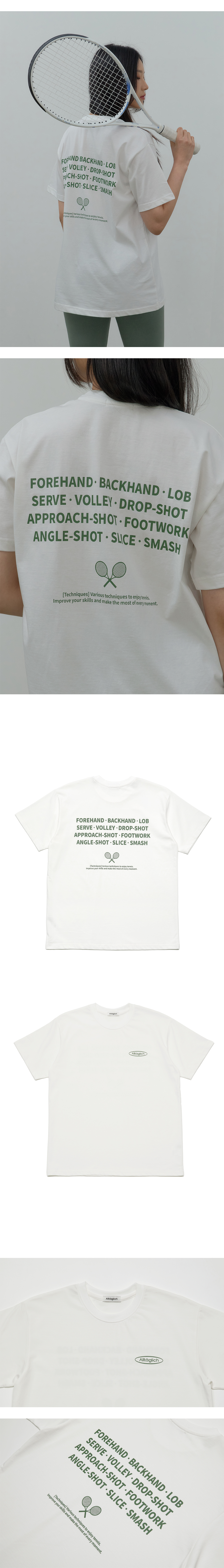 운동과 일상을 잇는 알테그리히의 시선으로 담은 테니스 테크닉 티셔츠. 테니스를 즐기기 위한 다양한 테니스 기술을 담은 테크닉 티셔츠 입니다. 자주 사용하는 기술들을 트레이닝하며 코트 위에서 뿐만 아니라 일상 속에서도 언제나 테니스와 함께 하세요! - 일반면 원사의 불순물과 이물질을 제거한 고급 코마사 원사 - 원단 표면의 잔털을 제거하는 바이오 엔자임 가공