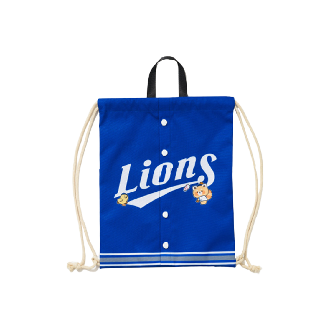 Lessey & Friends x KBO The Strongest Lessey Victory Graphic Button Gym Sack Blue Samsung Lions