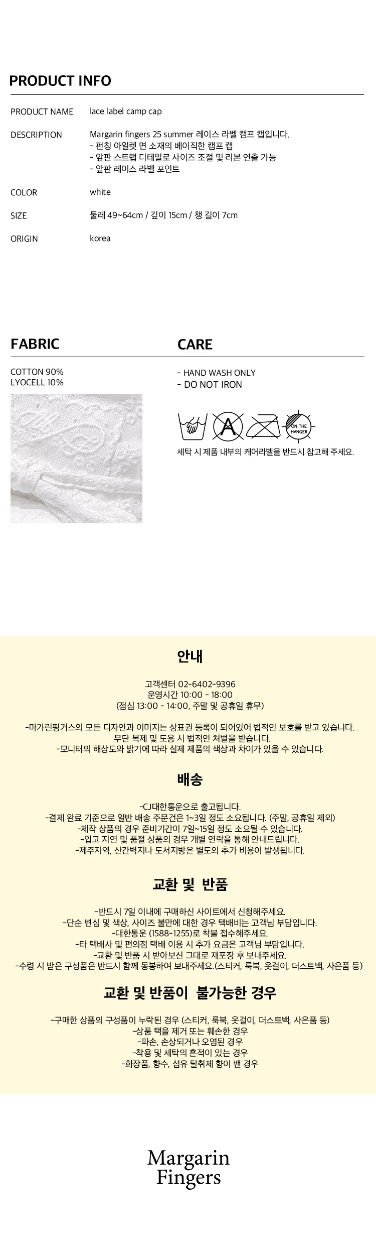 마가린핑거스 레이스 라벨 캠프 캡 화이트