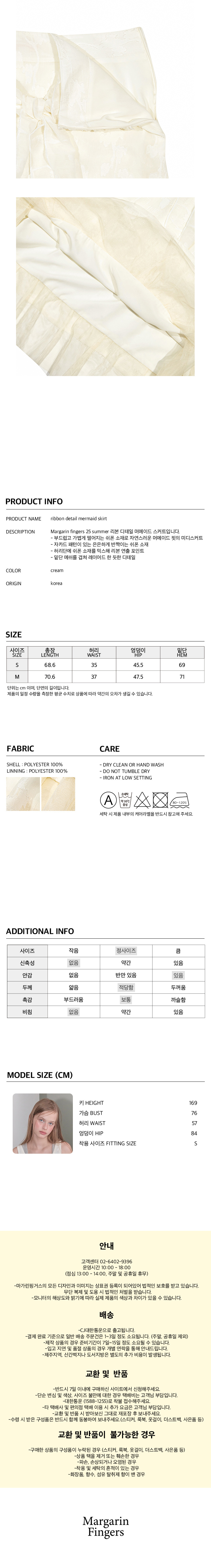 마가린핑거스 리본 디테일 머메이드 스커트 크림