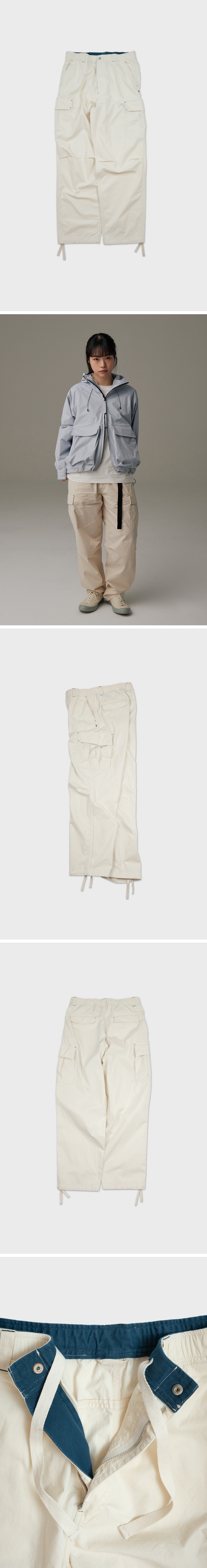 코튼 트윌 카고팬츠는 편안한 착용감이 인상적이며 허리 스트링으로 사이즈 조절이 가능하여 아웃도어 뿐만이 아니라 데일리룩으로도 부담 없이 착용할수 있는 아이템입니다. 사이즈 정보에 기재된 허리 너비는 허리 밴딩을 늘리지 않은 상태의 길이이며, 착용 시 약 4-6cm까지 늘어납니다.