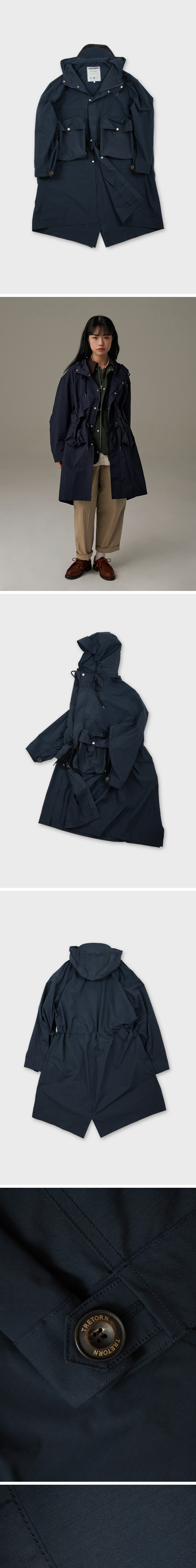 나일론 피쉬테일 후디 파카는 소재 믹스와 플랫 포켓이 디자인적 요소를 강조했으며, 방수 기능을 갖춰 일상은 물론 우천 시에도 활용할 수 있는 아우터입니다.