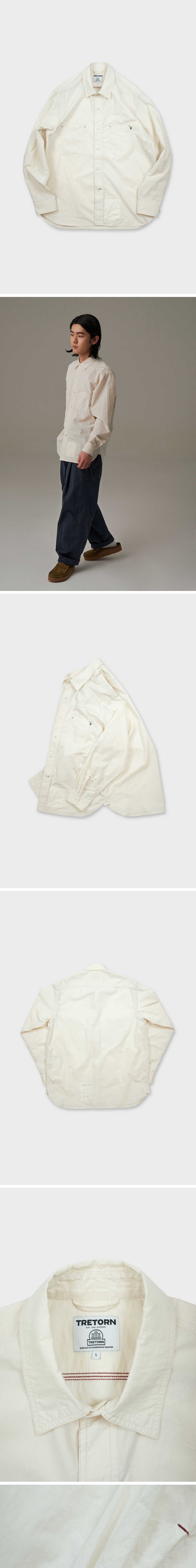 워크 셔츠는 활동성이 높은 나일론 코튼 혼합 소재로 내구성이 뛰어나고 가벼운 착용감을 제공합니다. 스티치 카라, 트리플 스티치 등 완성도 높은 봉제 마감이 특징이며 다층 포켓과 같은 디자인적으로 재미있는 디테일이 인상적인 아이템입니다.