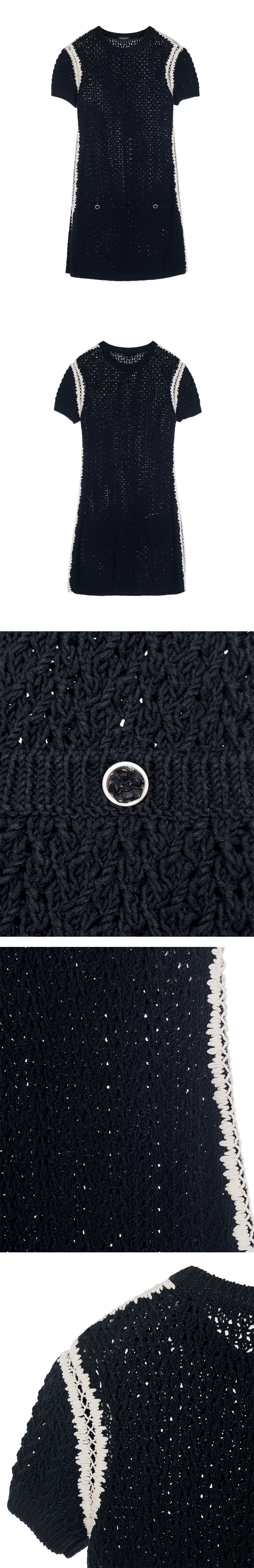 샤넬 22C 숏슬리브 니트 원피스 36 블랙/에크루