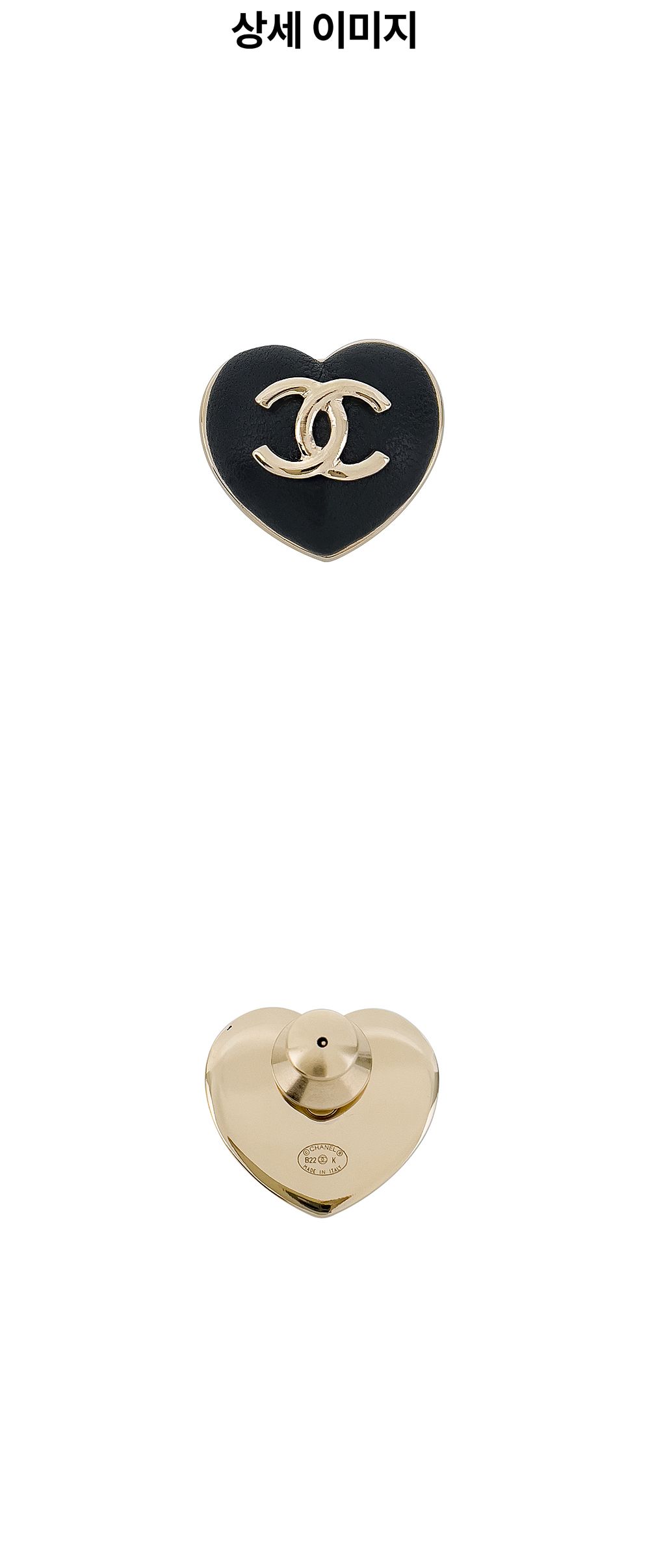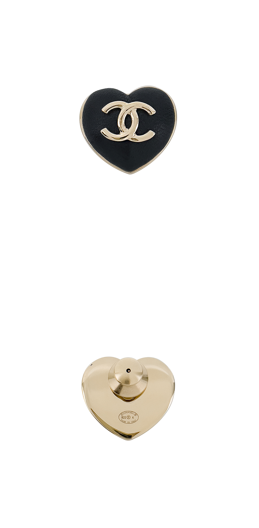 샤넬 22K CC로고 레더 하트 핀 브로치 블랙 샴페인골드